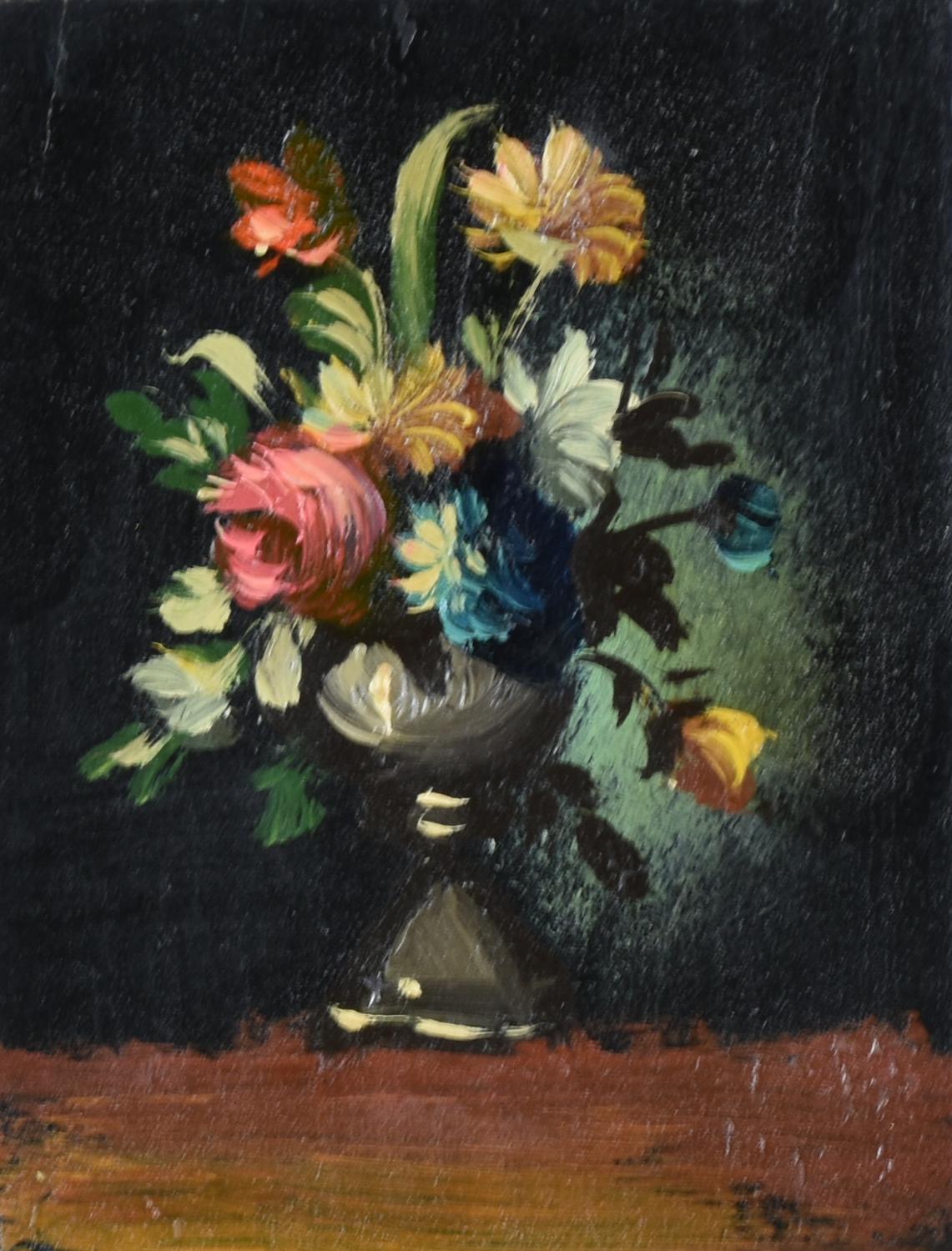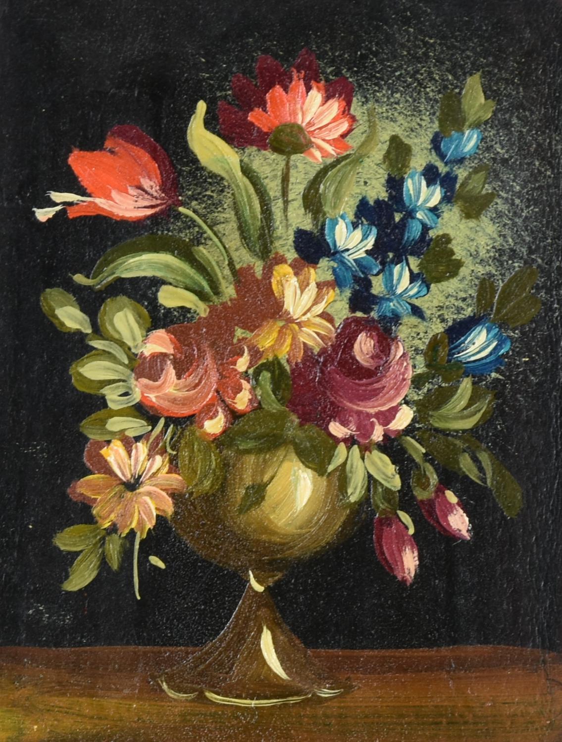 Anonimo LOTTO COMPOSTO DA 4 NATURE MORTE olio su cartone, cm 9x7 ciascuna (4)