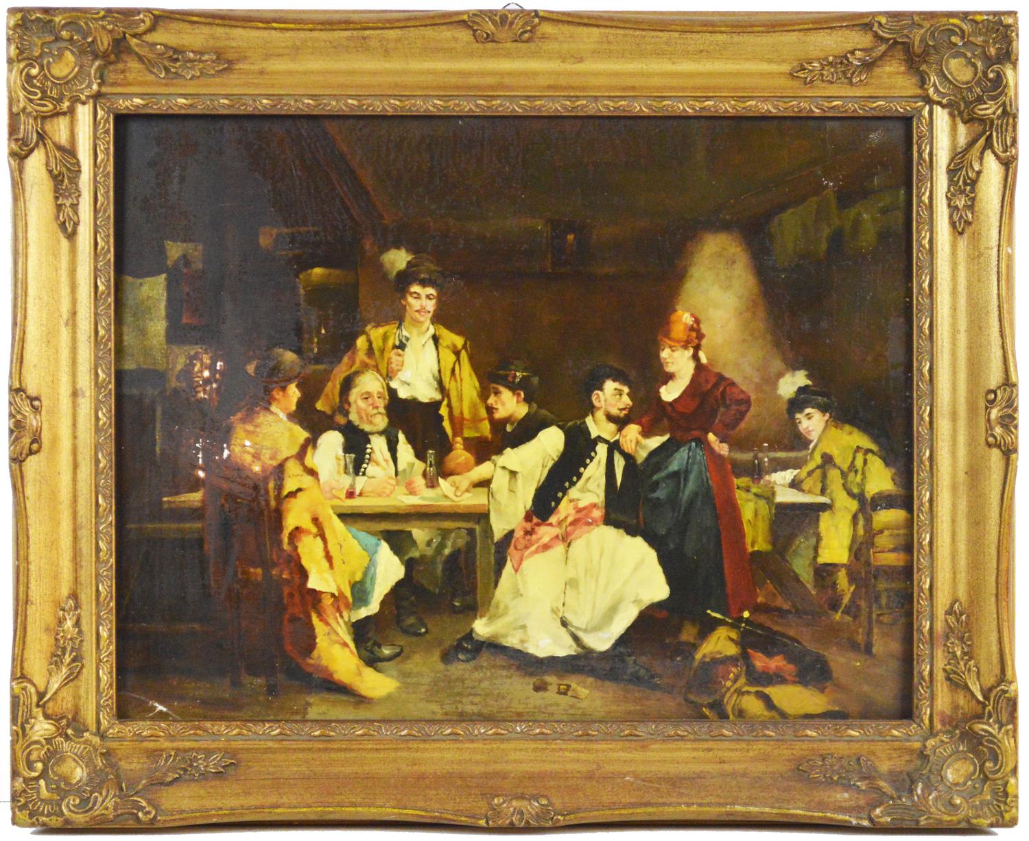 Ignoto SCENA DI OSTERIA olio su tavoletta, cm 30x40,5 indistintamente firmato...