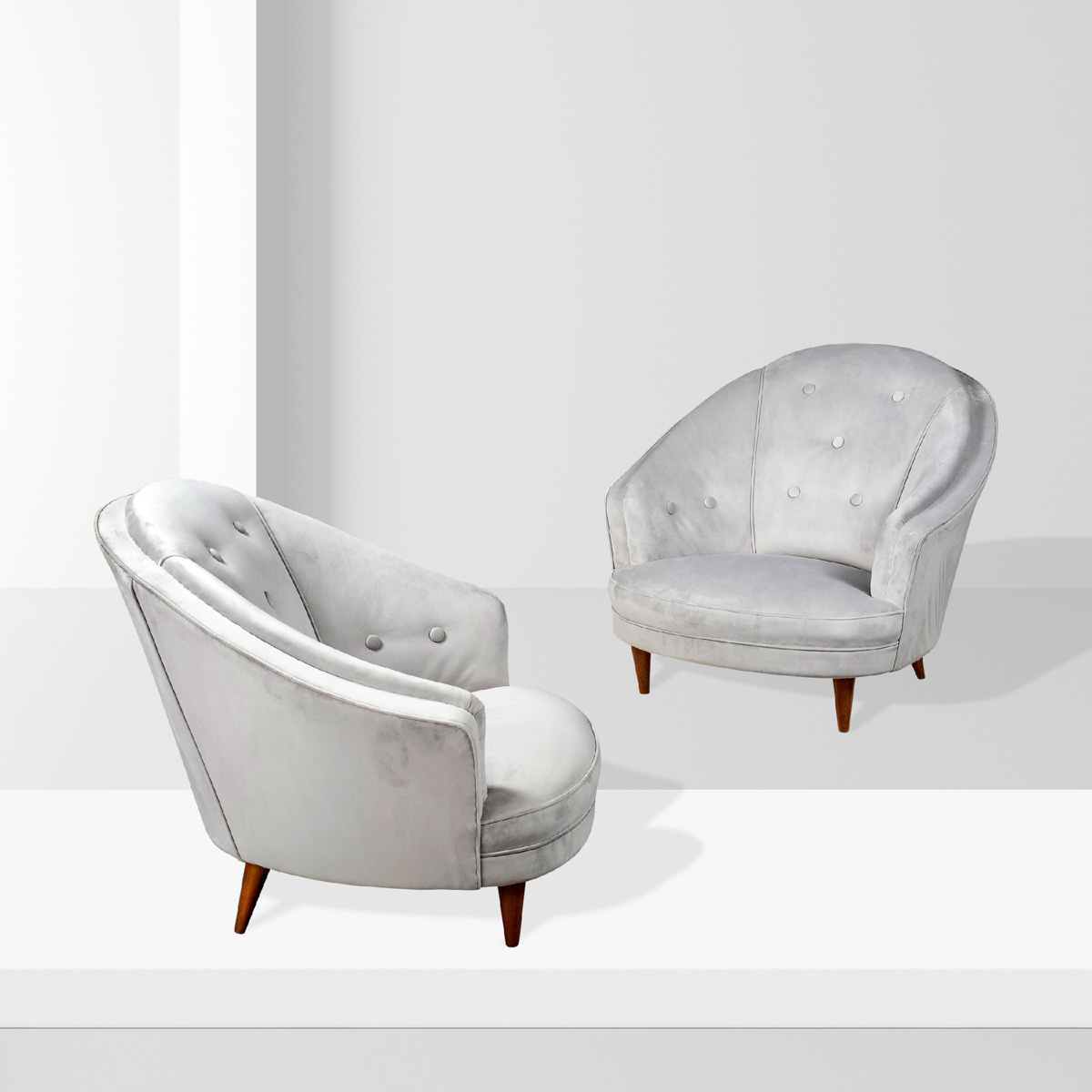 Gio Ponti (2)Italia, anni 4079x90x53 cm.due poltrone legno e tessuto imbottito. Certificato Gio Ponti Archives