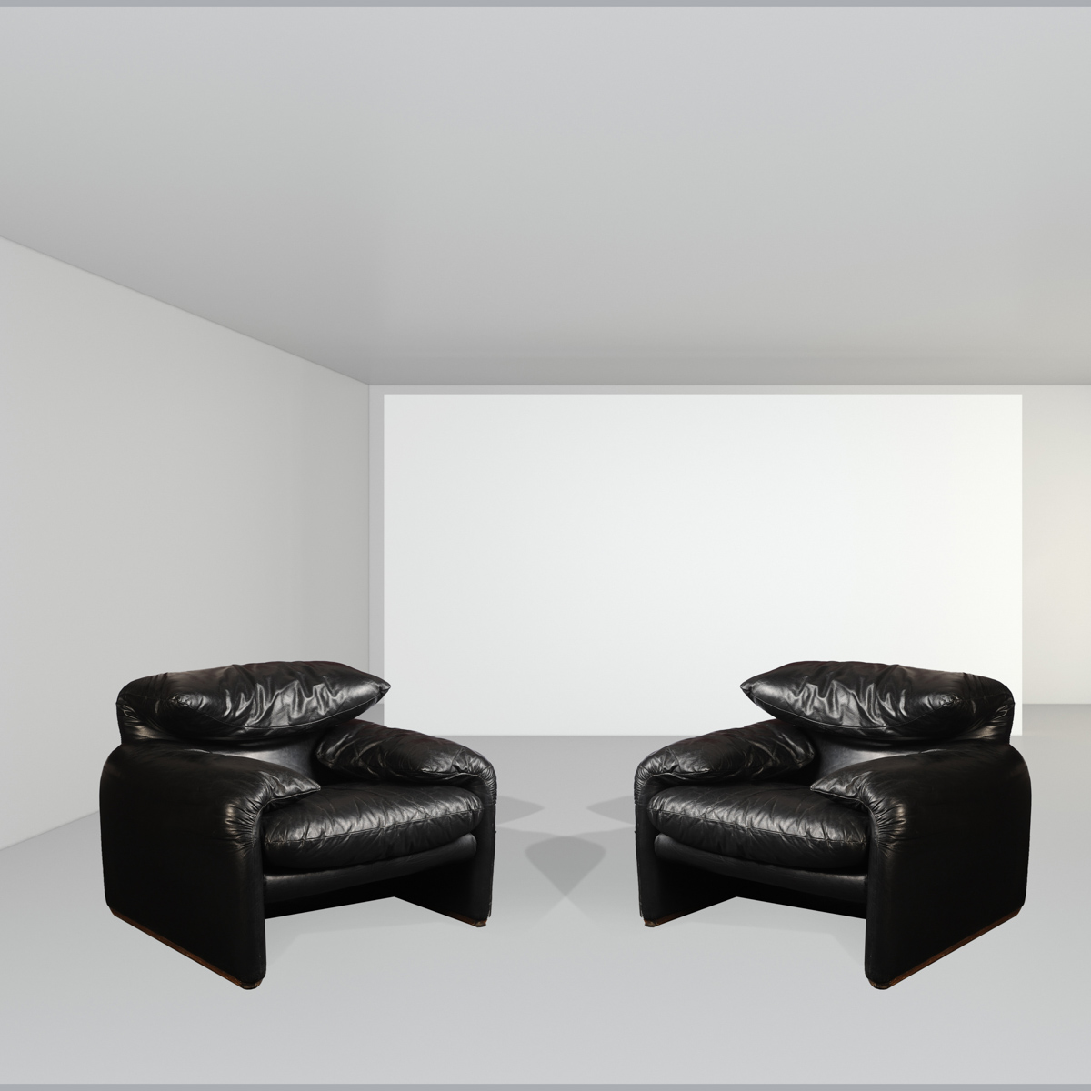 Vico MagistrettiItalia, anni 7070x90x85 cm.coppia di poltrone Maralunga, imbottite in pelle