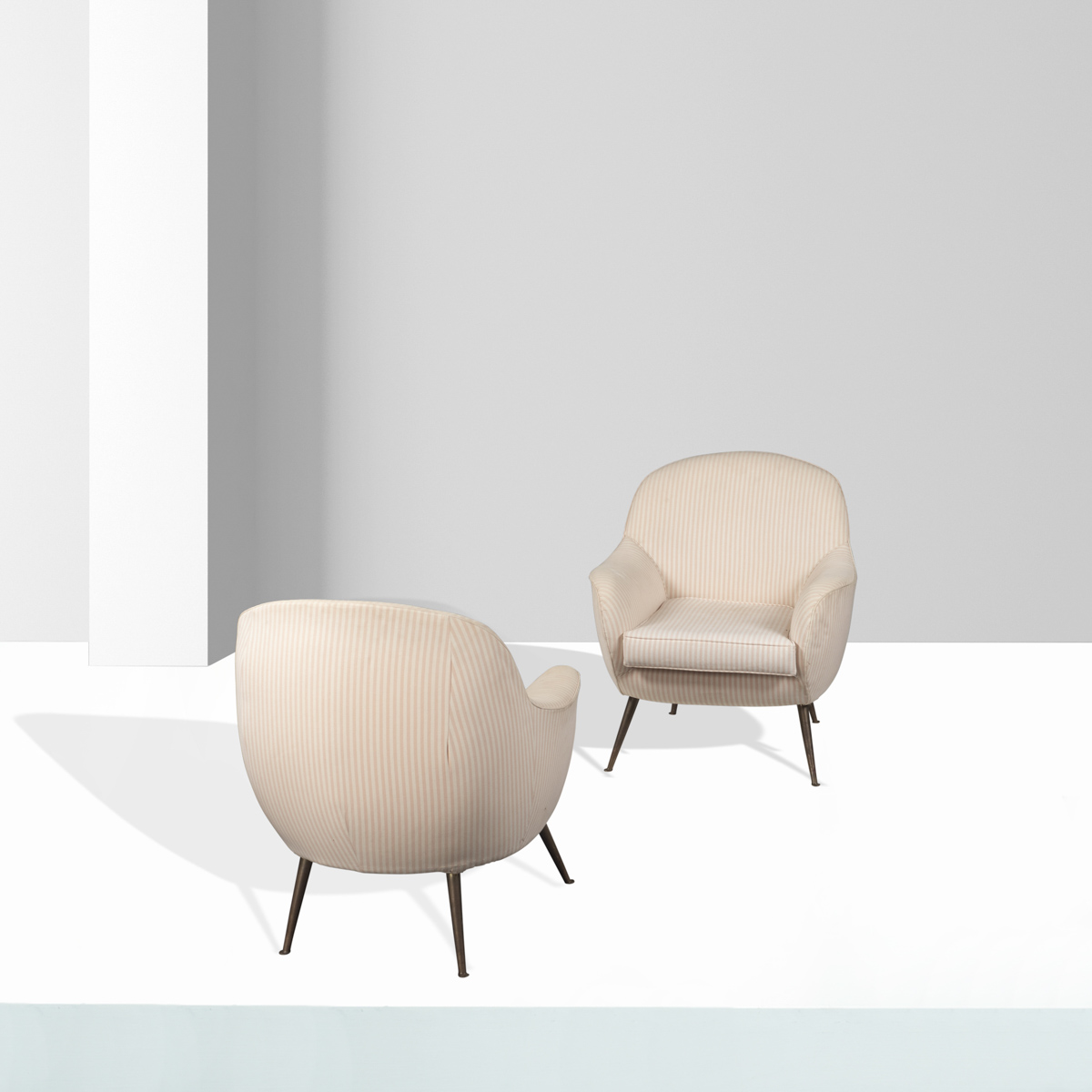 Lotto 142 | I.S.A. (2)Italia, anni 5082x72x72 cm.coppia di poltrone, tessuto imbottito e...