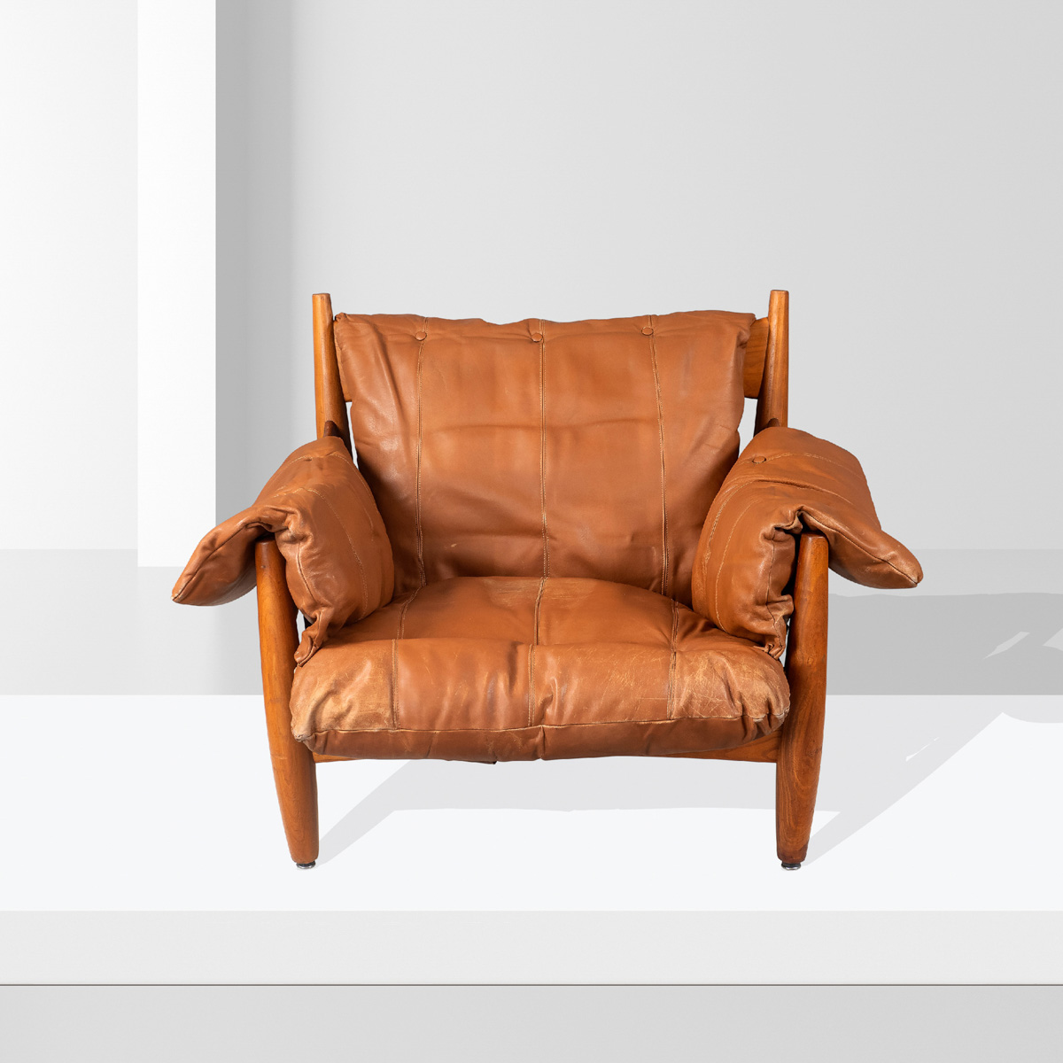 Sergio Rodrigues, prod. I.S.A.Italia, anni 5073x90x90 cm.poltrona Sheriff, palissandro, legno e cuoio