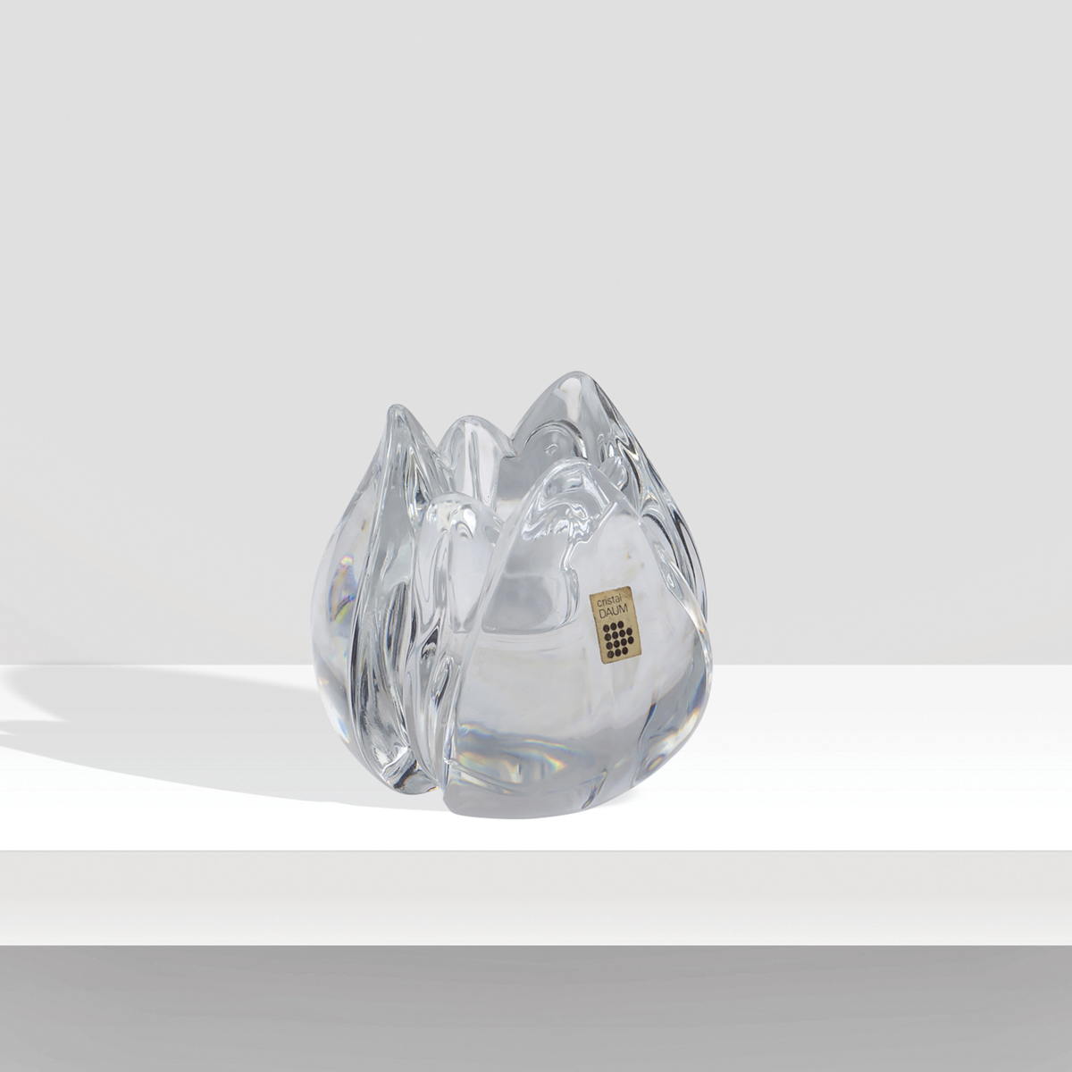 DaumFrancia, XX Sec.h. 8,5 cm.portacandele in cristallo trasparente, firmato