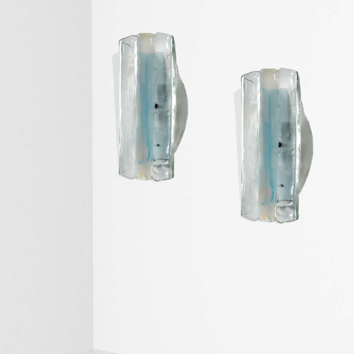 Carlo Nason, prod. Mazzega (2)Murano, anni 7040x10x18 cm.due lampade da parete in vetro trasparente e bianco