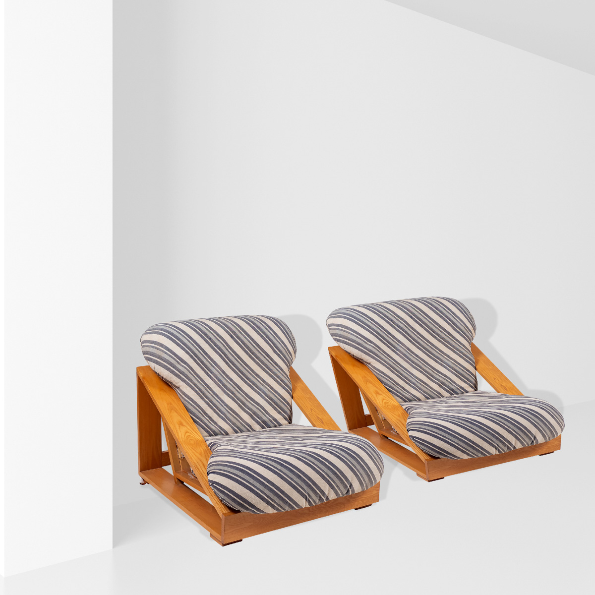 Manifattura scandinava (5)Anni 70-8070x80x100 cm.cinque poltrone da giardino in legno e tessuto, difetti al tessuto