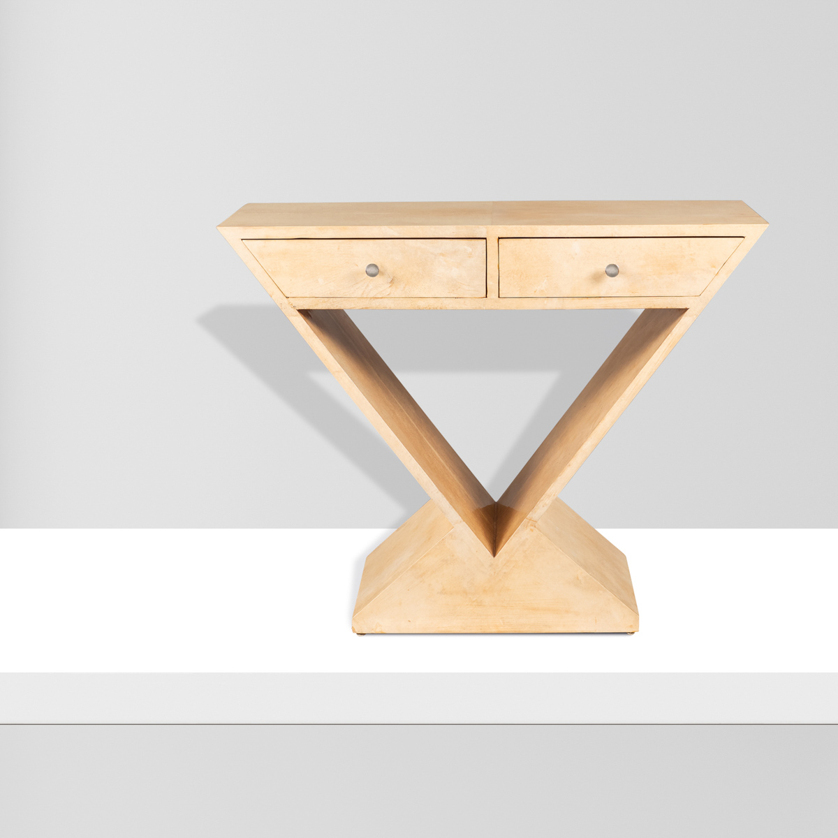 Lotto 369 | Manifattura franceseXX Sec.dim. 87x110x40 cm.console in pergamena e acciaio