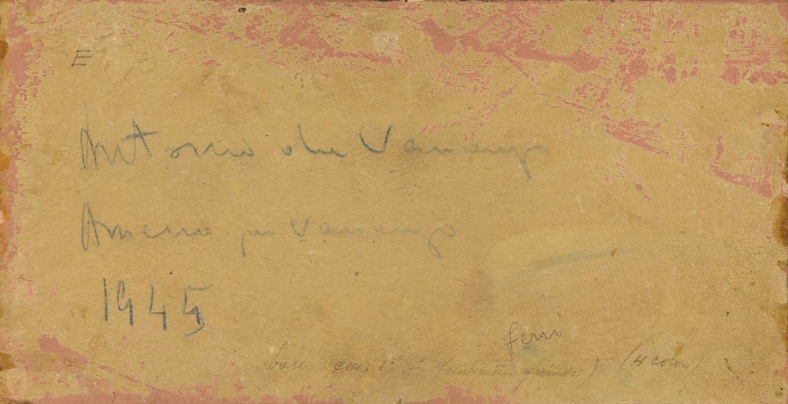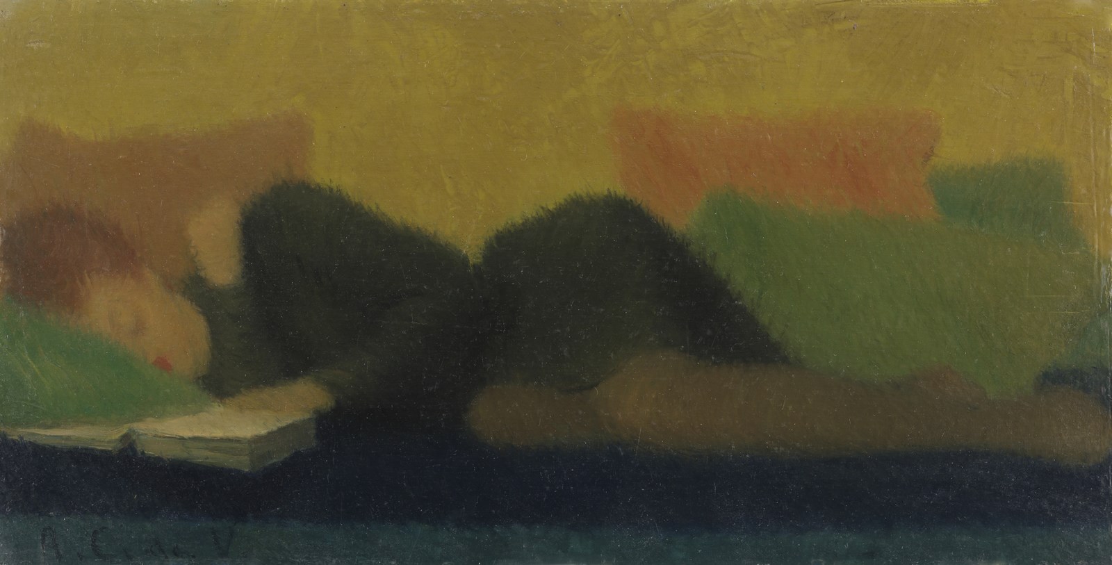 CALDERARA ANTONIO (1903 - 1978) Donna. 1945. Olio su tavola. Cm 27,00 x 14,00. Firma in basso a sinistra. Opera archiviata presso l'Archivio Antonio Calderara, Milano come da documentazione fotografica allegata all'opera riportante il relativo numero d'inventario. Cornice presente