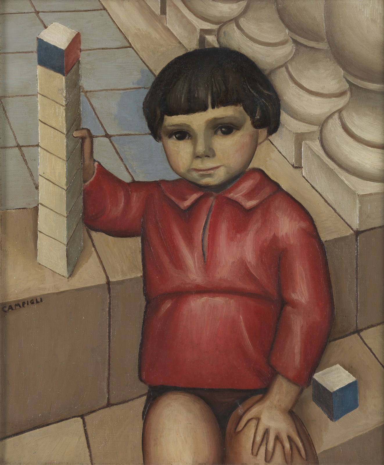 CAMPIGLI MASSIMO (1895 - 1971) Senza titolo. 1924. Olio su tela . Cm 46,00 x 55,50. Firma in basso a sinistra. Al retro cartiglio descrittivo Galleria Farsetti, Prato. Pubblicazione: Catalogo ragionato n. 24-003, p. 412. Cornice presente