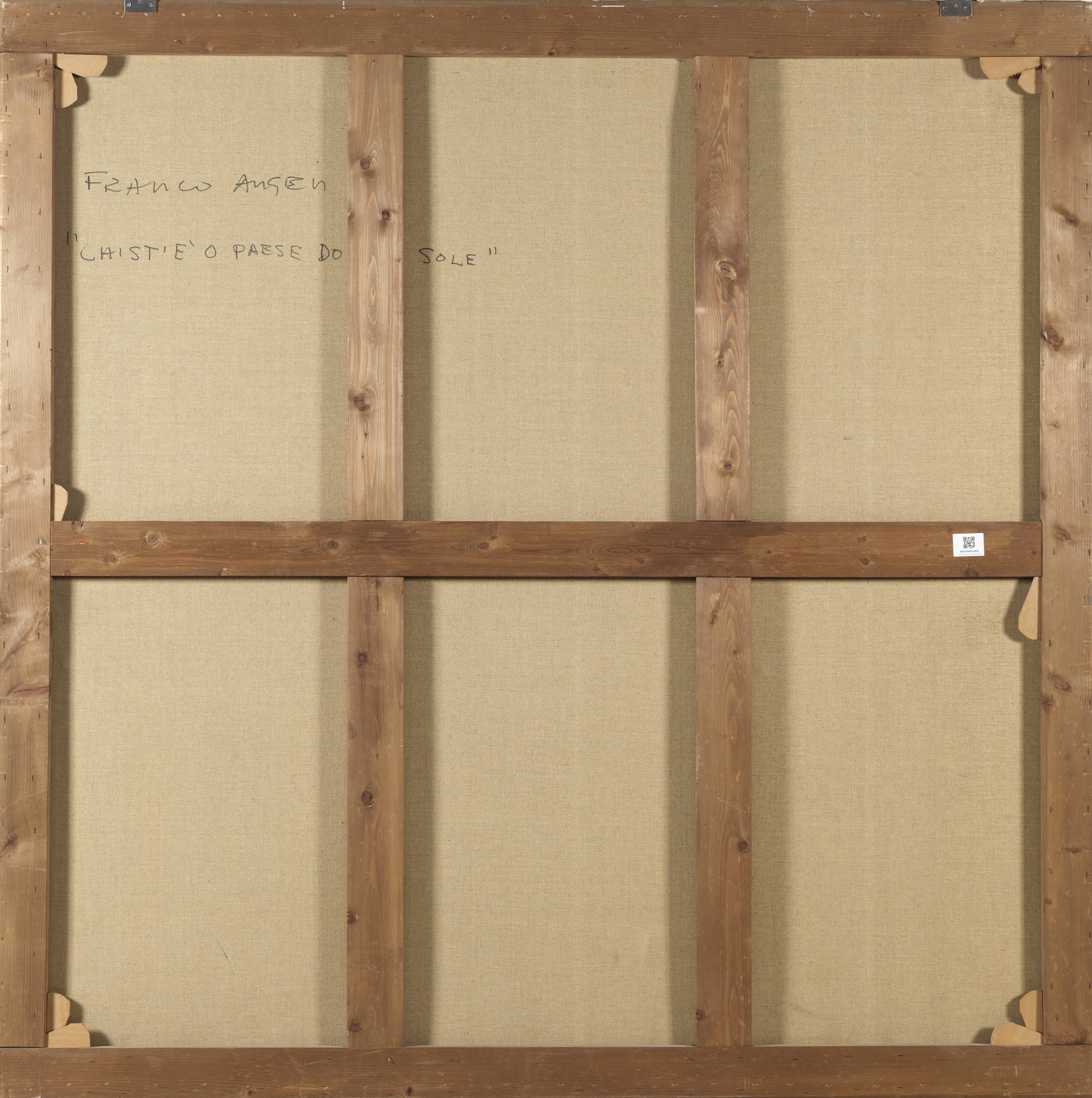ANGELI FRANCO (1935 - 1988) Chist'è o paese do sole. Tecnica mista su tela. Cm 190,00 x 190,00. Titolo e firma al retro. Opera archiviata presso l'Archivio Franco Angeli, Roma come da documentazione fotografica allegata all'opera riportante il relativo numero d'inventario. 1973/1975