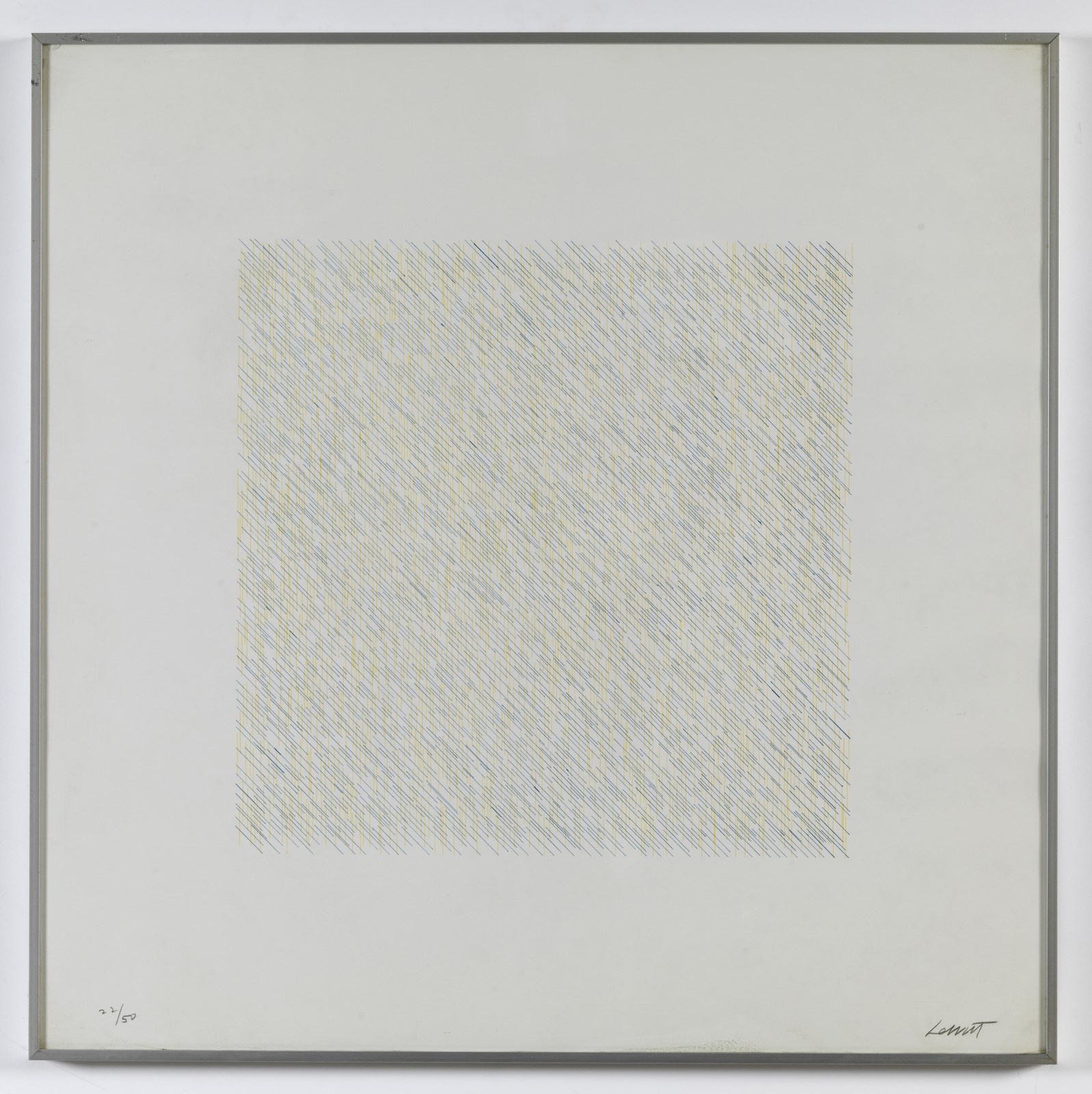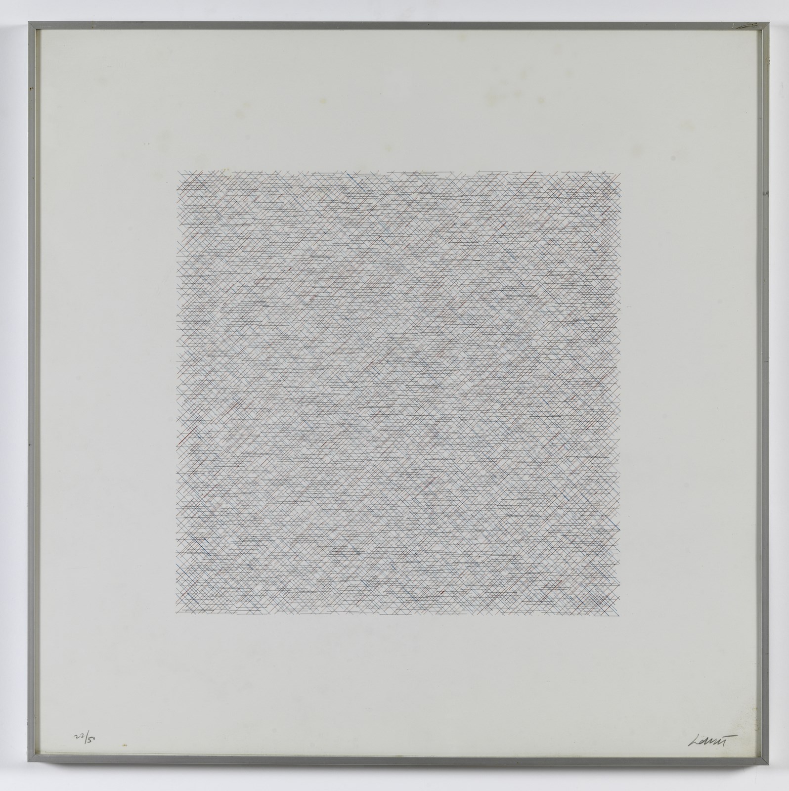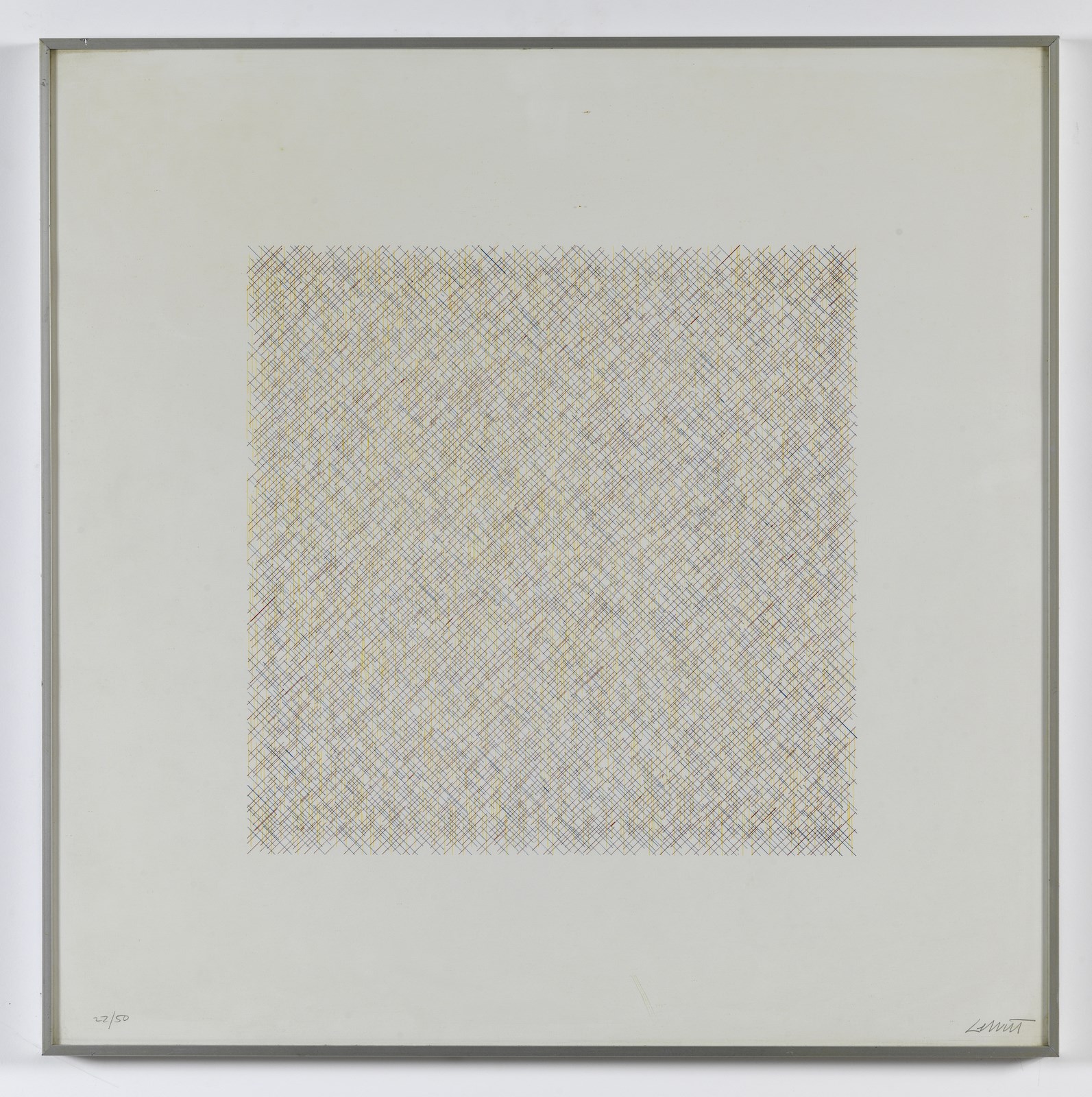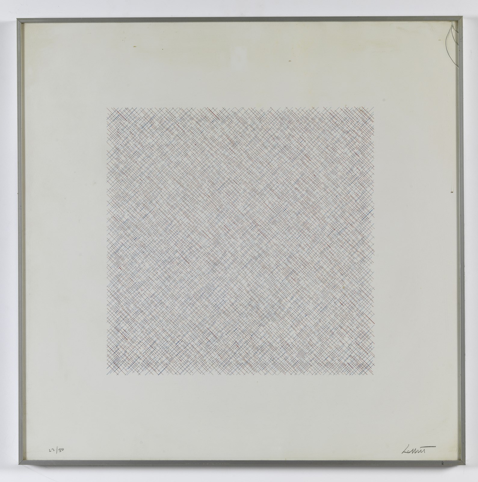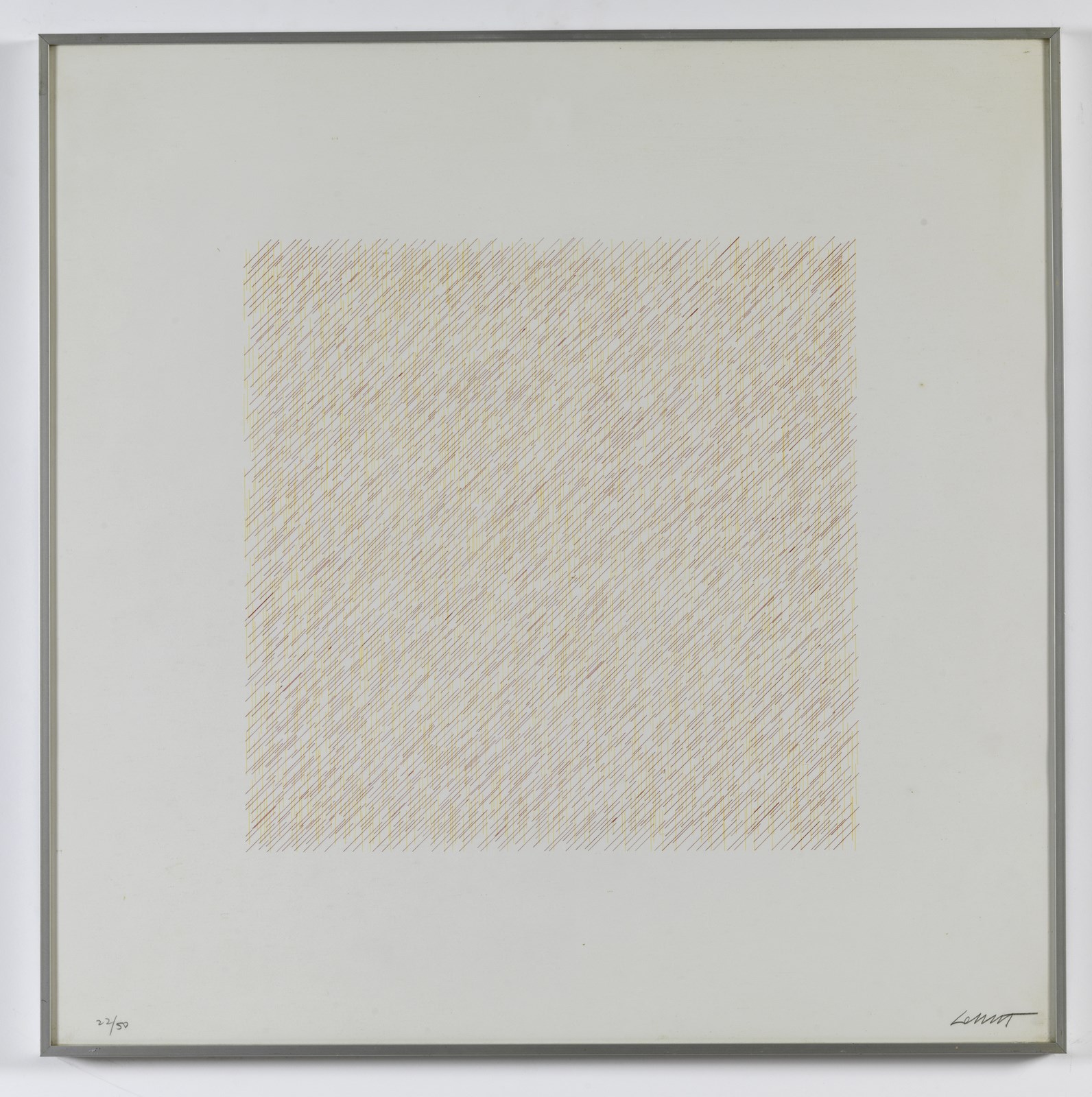 LEWITT SOL (1928 - 2007) Lines of One Inch in Four Directions and All Combinations (Sixteen lithographs in color). 1971. Litografia. Cm 58,00 x 58,00. 22/50. Al retro timbro edizioni Landfall, Press, Chicago. Edizione totale: 50 + 10 A.p. Carta Magnani, Italia. Ogni grafica è firmata e numerata a matita dall'artista. Editore: Landfall Press, Chicago, Illinois. Stampatore: Landfall Press, Chicago, Illinois. Certificato di garanzia e autenticità a cura della Landfall Press, Chicago, Illinois con firma dell'artista. Sitografia: https://www.sollewittprints.org/artwork/lewitt-raisonne-1971-16/ . Difetti. Cornice presente
