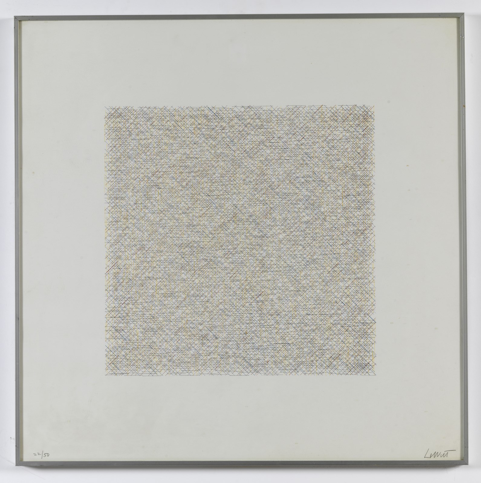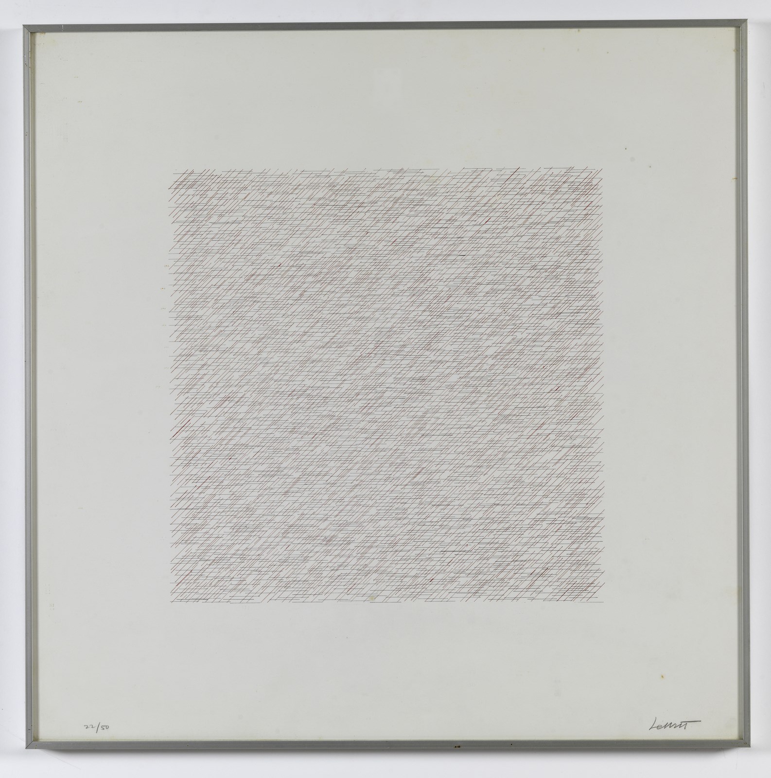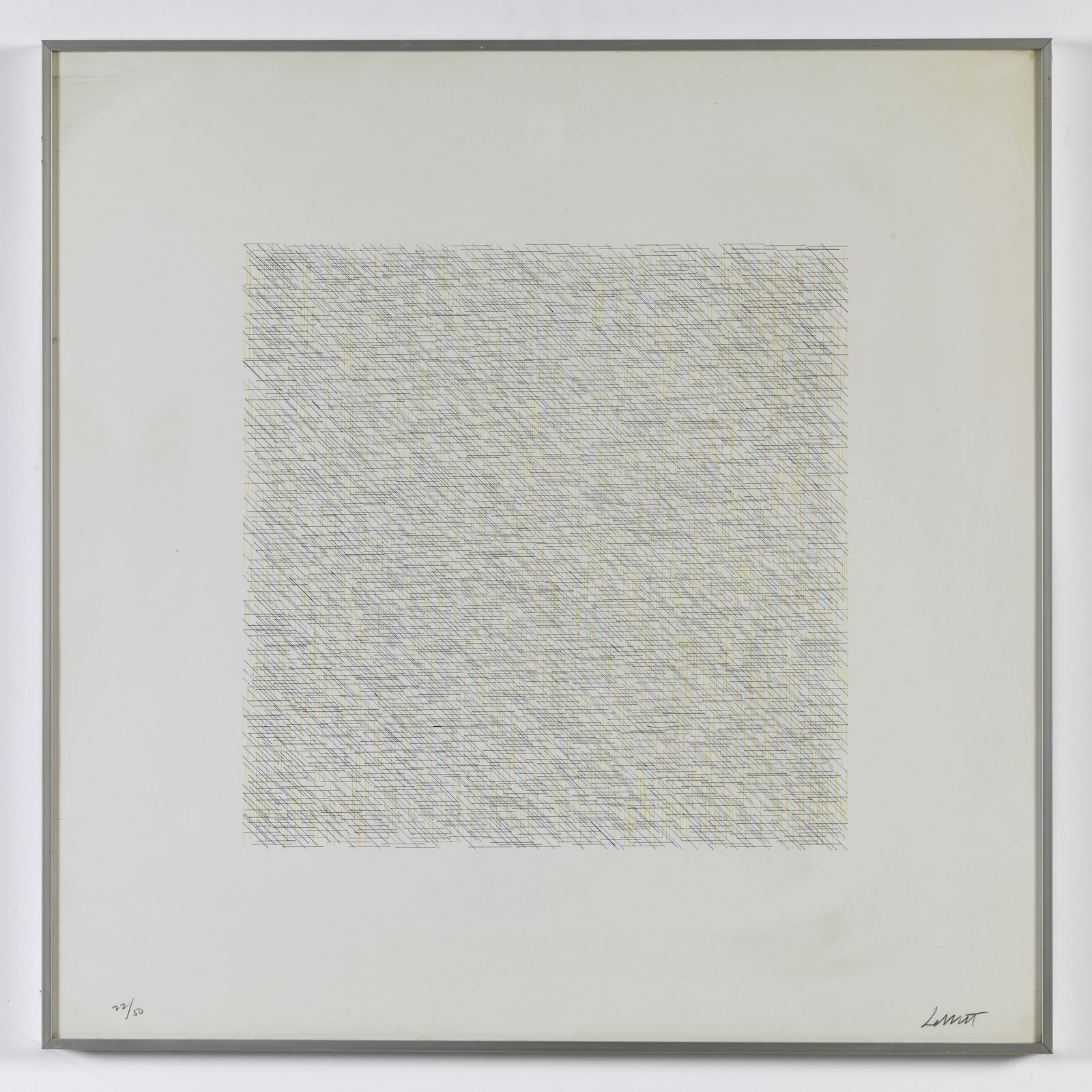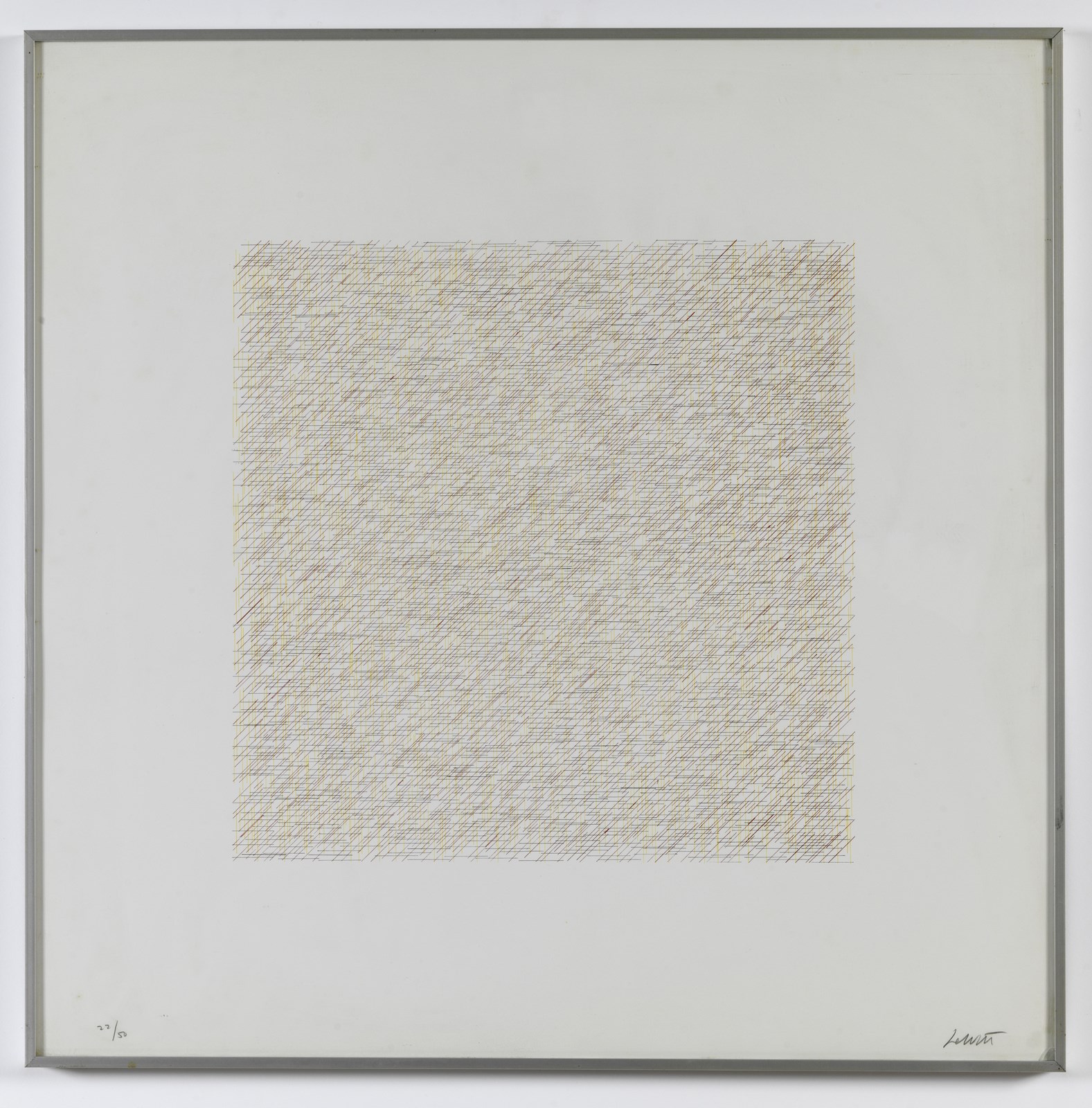 LEWITT SOL (1928 - 2007) Lines of One Inch in Four Directions and All Combinations (Sixteen lithographs in color). 1971. Litografia. Cm 58,00 x 58,00. 22/50. Al retro timbro edizioni Landfall, Press, Chicago. Edizione totale: 50 + 10 A.p. Carta Magnani, Italia. Ogni grafica è firmata e numerata a matita dall'artista. Editore: Landfall Press, Chicago, Illinois. Stampatore: Landfall Press, Chicago, Illinois. Certificato di garanzia e autenticità a cura della Landfall Press, Chicago, Illinois con firma dell'artista. Sitografia: https://www.sollewittprints.org/artwork/lewitt-raisonne-1971-16/ . Difetti. Cornice presente