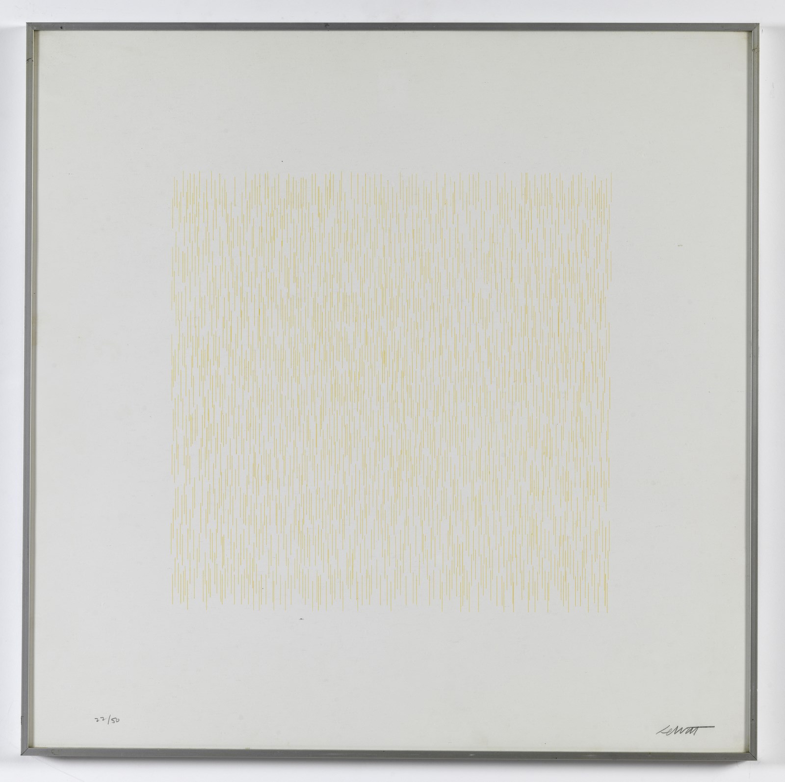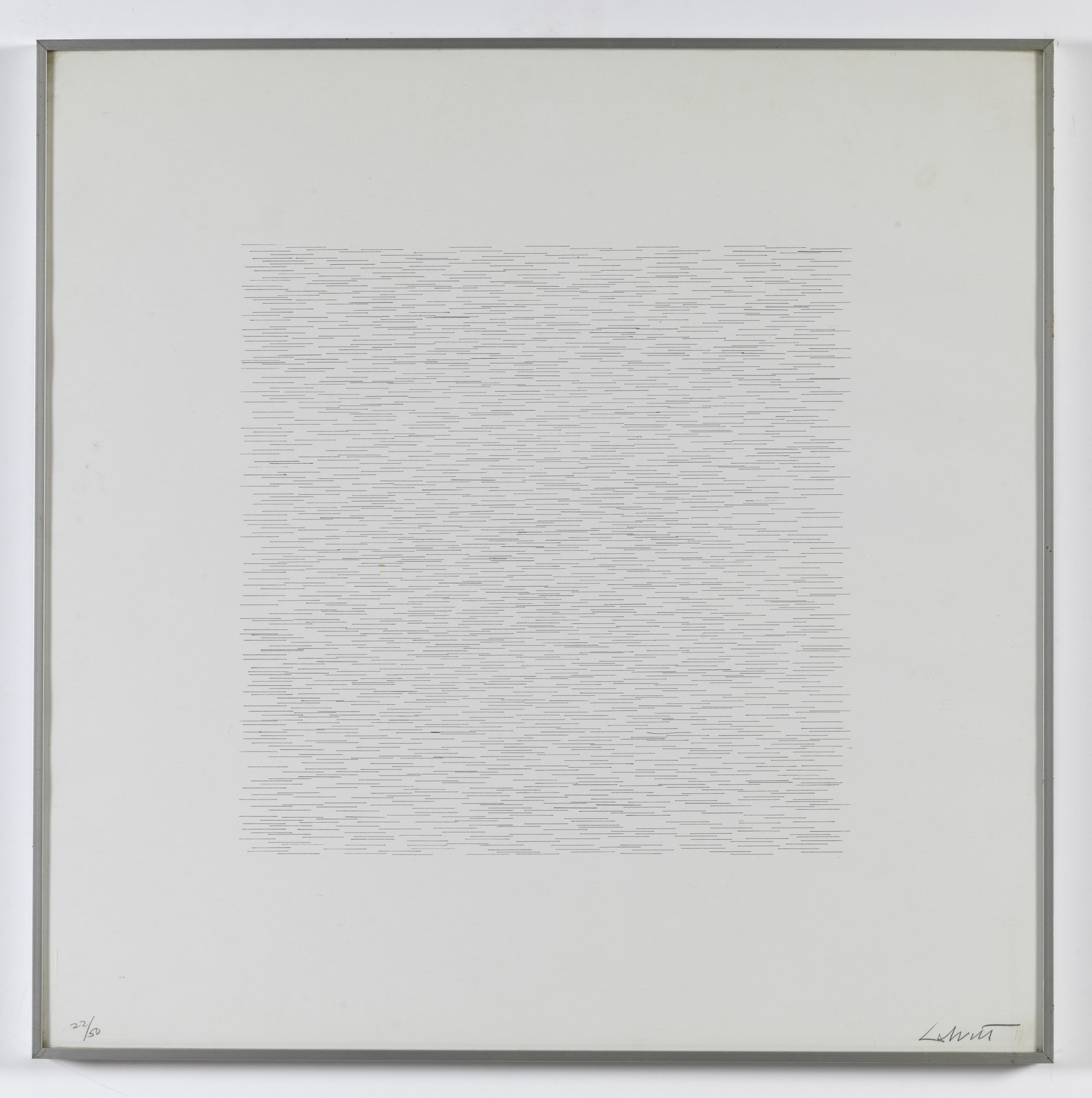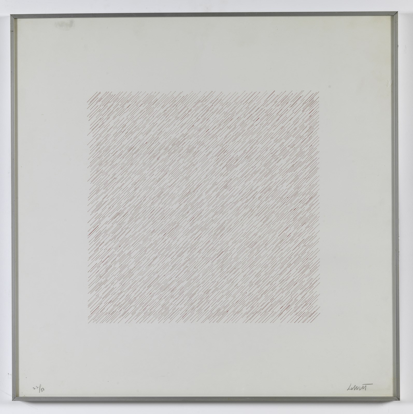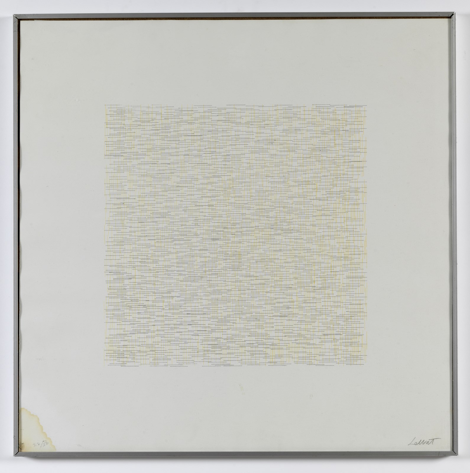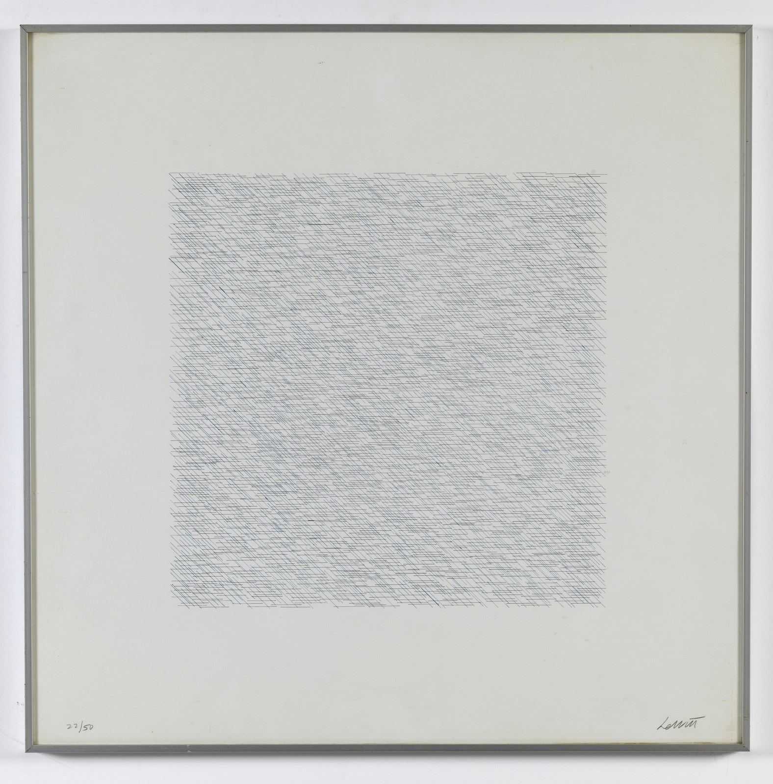 LEWITT SOL (1928 - 2007) Lines of One Inch in Four Directions and All Combinations (Sixteen lithographs in color). 1971. Litografia. Cm 58,00 x 58,00. 22/50. Al retro timbro edizioni Landfall, Press, Chicago. Edizione totale: 50 + 10 A.p. Carta Magnani, Italia. Ogni grafica è firmata e numerata a matita dall'artista. Editore: Landfall Press, Chicago, Illinois. Stampatore: Landfall Press, Chicago, Illinois. Certificato di garanzia e autenticità a cura della Landfall Press, Chicago, Illinois con firma dell'artista. Sitografia: https://www.sollewittprints.org/artwork/lewitt-raisonne-1971-16/ . Difetti. Cornice presente