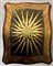 Comodino da centro a due cassetti decorati con motivi a stella. Guarnizioni in metallo dorato (cm 43x75x33) (difetti e mancanze)
