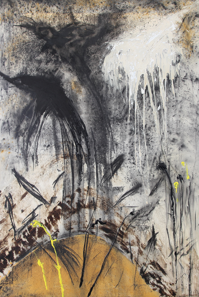 NINO GIULIETTI Reggio Calabria 22/07/1946 Egizia, 1995 olio e tecnica mista su tela cm. 150x100, firma, titolo, anno e tecnica al retro.