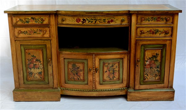 Lotto 50 | Credenza in legno laccato e dipinto a fiori a quattro ante, cinque cassetti e u