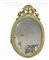 Specchiera di forma ovale in legno laccato verde e oro, cimasa intagliata. Sec. XIX (cm 76x47) (difetti e mancanze)