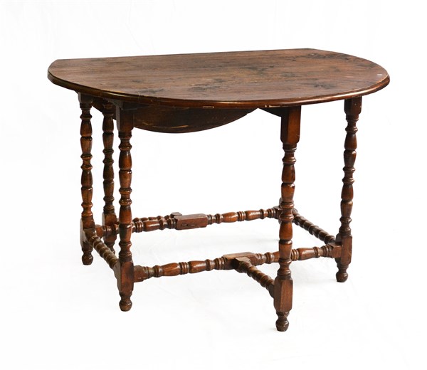 Antico tavolo ad alette, gambe e traverse tornite (cm 120x80x66) (difetti)