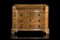 Antica ribalta di forma mossa lastronata in radica e filettata. Fronte a tre ca