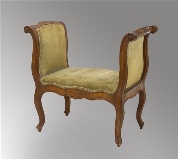 Lotto 341 | Panchetto di forma mossa in legno intagliato, montanti terminanti a ricciolo. S