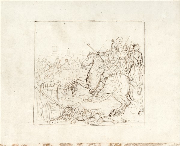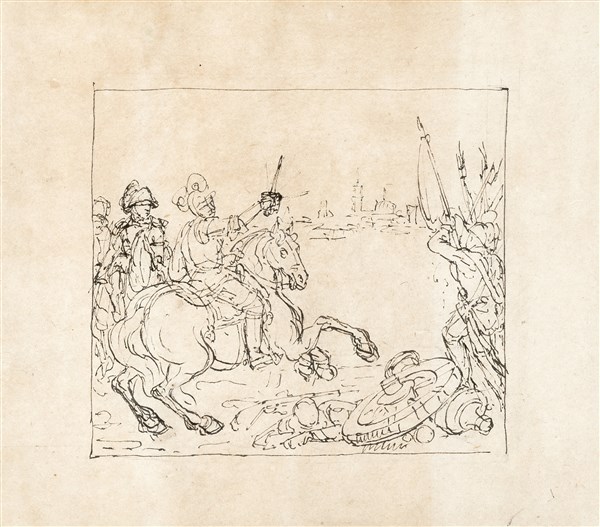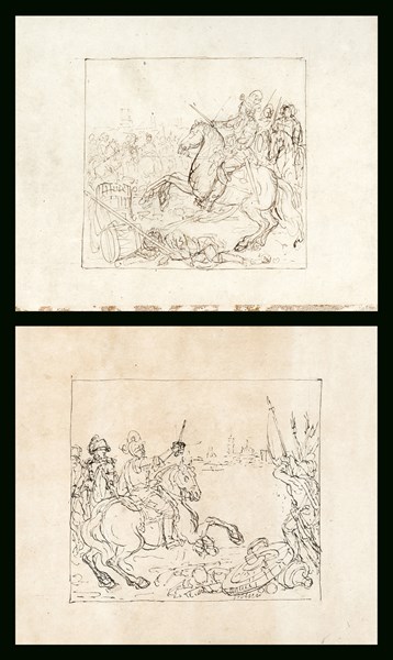 Scuola della fine del secolo XVIII Battaglie Coppia di disegni a penna e inchi