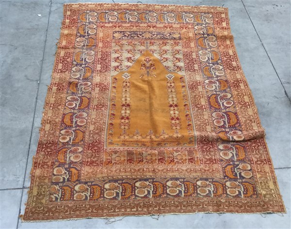 Tappeto preghiera Ladik, Anatolia, secolo XIX. Mirab a fondo ocra con due colon
