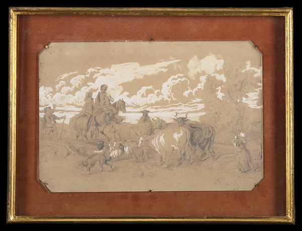 Artista dell'inizio del secolo XIX Pastori e armenti Matita nera e biacca su c