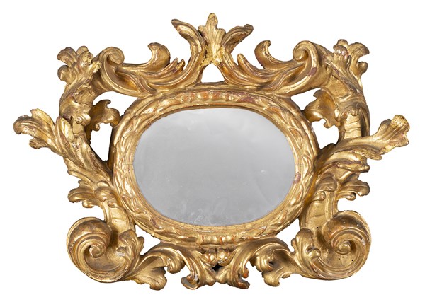 Cornice in legno intagliato e dorato a volute fogliate. Fine secolo XVII (cm 30