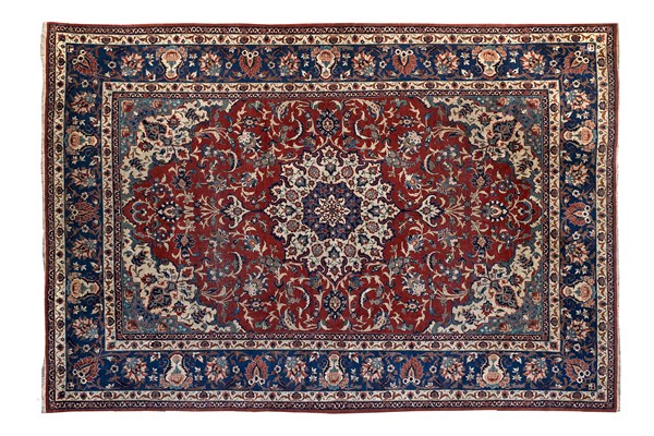 Lotto 442 | Tappeto Isphahan, Persia, secolo XX. Decoro a medaglione lanceolato bianco e az