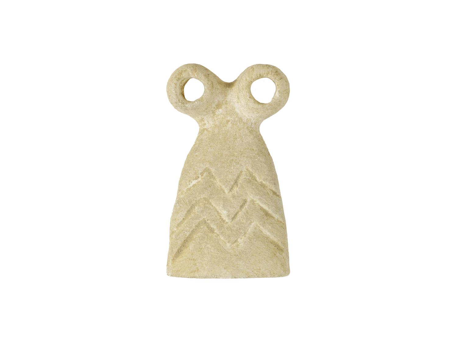 Divinità caratteristica del tempio dell'occhio di Tell Brak costituita da un corpo campaniforme, decorato a chevron e sormontato da due grandi occhi stilizzati