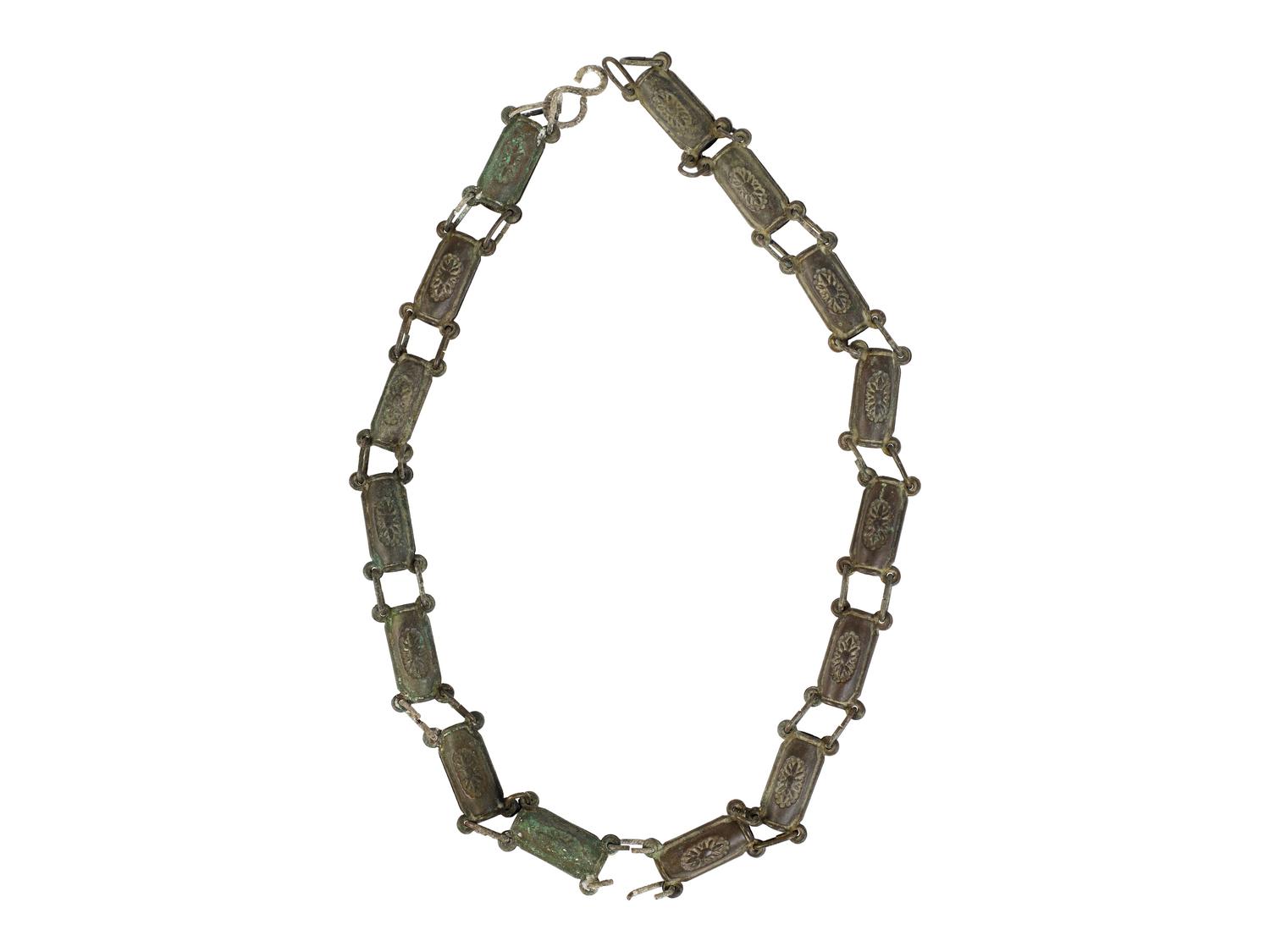 Cintura costituita da quindici elementi tubulari centrati ognuno da un'infiorescenza e con quattro anelli agli angoli per collegarsi tramite anelli in filo di rame all'elemento contiguo