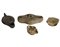 Lucerna bilicne con corpo allungato con due becchi opposti a canale aperto e disco a due fori di alimentazione decentrati; piccola ansa anulare impostata al centro del disco; lucerna africana con spalla distinta dal disco decorato da cornice di cerchi e cuori; disco tendente all'ovale con due fori di alimentazione e figura maschile frontale stante con mani ai fianchi e corta tunica (Vulcano con martello e tenaglie?); ansa piena sporgente dal corpo; lucerna a prese laterali con spalla piatta e stretta; disco concavo delimitato da una scanalatura e decorato da un tritone(?) e due delfini ai lati di un'ara; due prese ''a fiocco' sui lati; piccola lucerna di ''forma aperta' con coperchio (4)