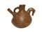 Brocca in terracotta rosso-bruno con becco versatoio tubolare raccordato alla bocca del vaso tramite un'ansa a sezione circolare. Dalla parte opposta del beccuccio è situata un'ansa modellata a testa di cavallo stilizzata, corpo lenticolare schiacciato, fondo piatto