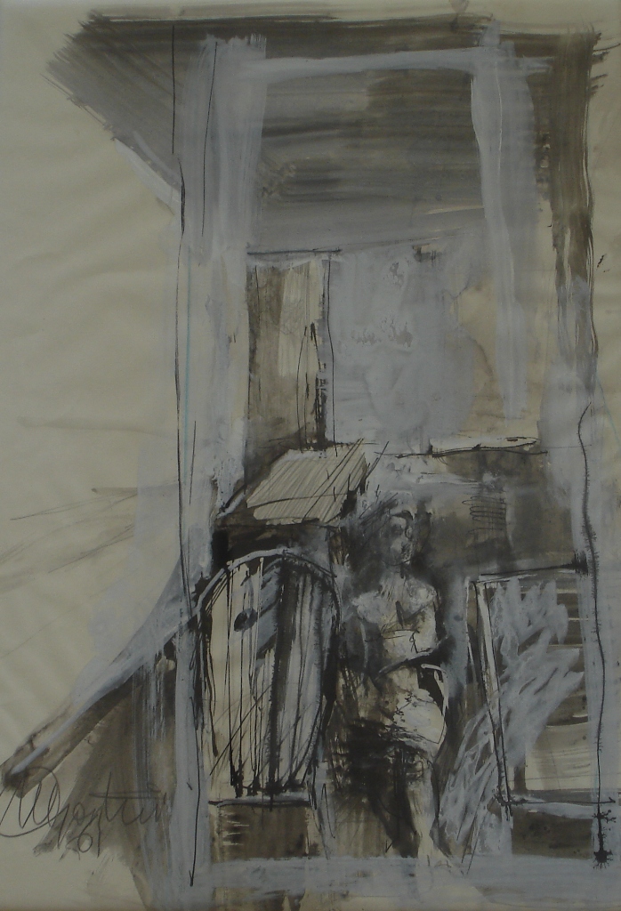 GASTINI MARCO - TORINO 1938 - SENZA TITOLO, 1961 - TECNICA MISTA SU CARTA, cm 47 x 33. Firma e data in basso a sinistra
