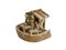 Modello di fattoria in terracotta comprendente una piccola abitazione con tetto coperto da tegole ed embrici ed uno spazio recintato da un muro con quattro cervidi ed una mangiatoia