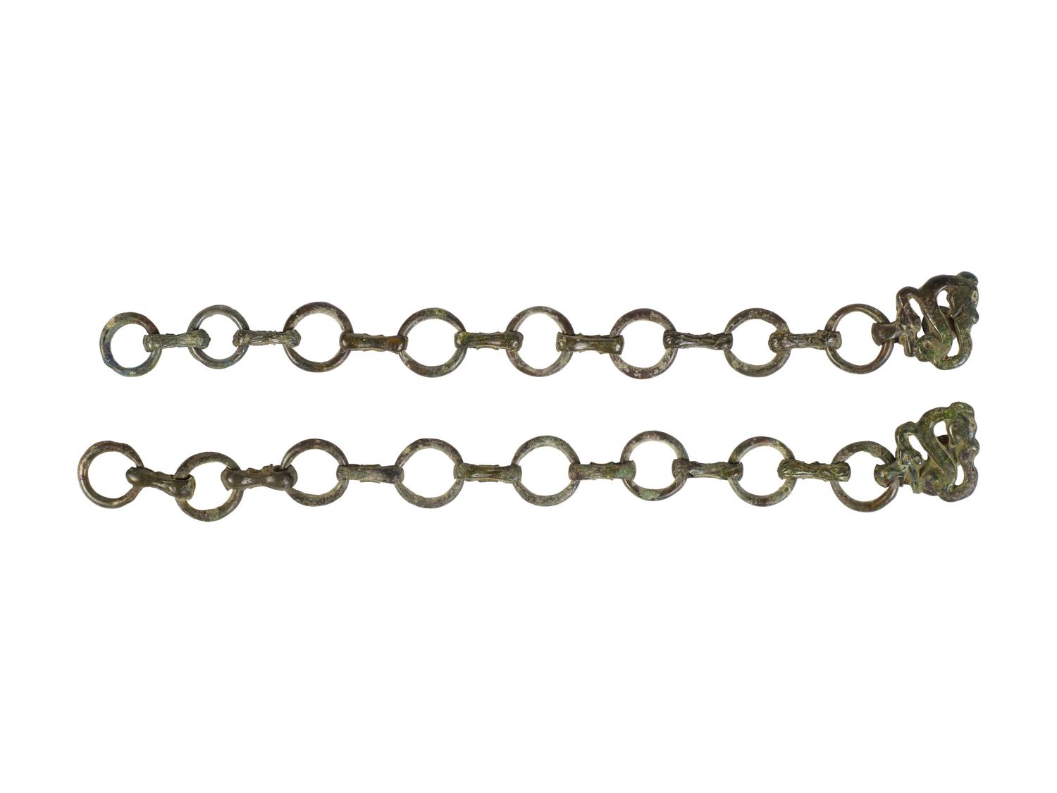 Due catene in bronzo con anelli in verga e ganci per sospendere il pugnale alla cintura