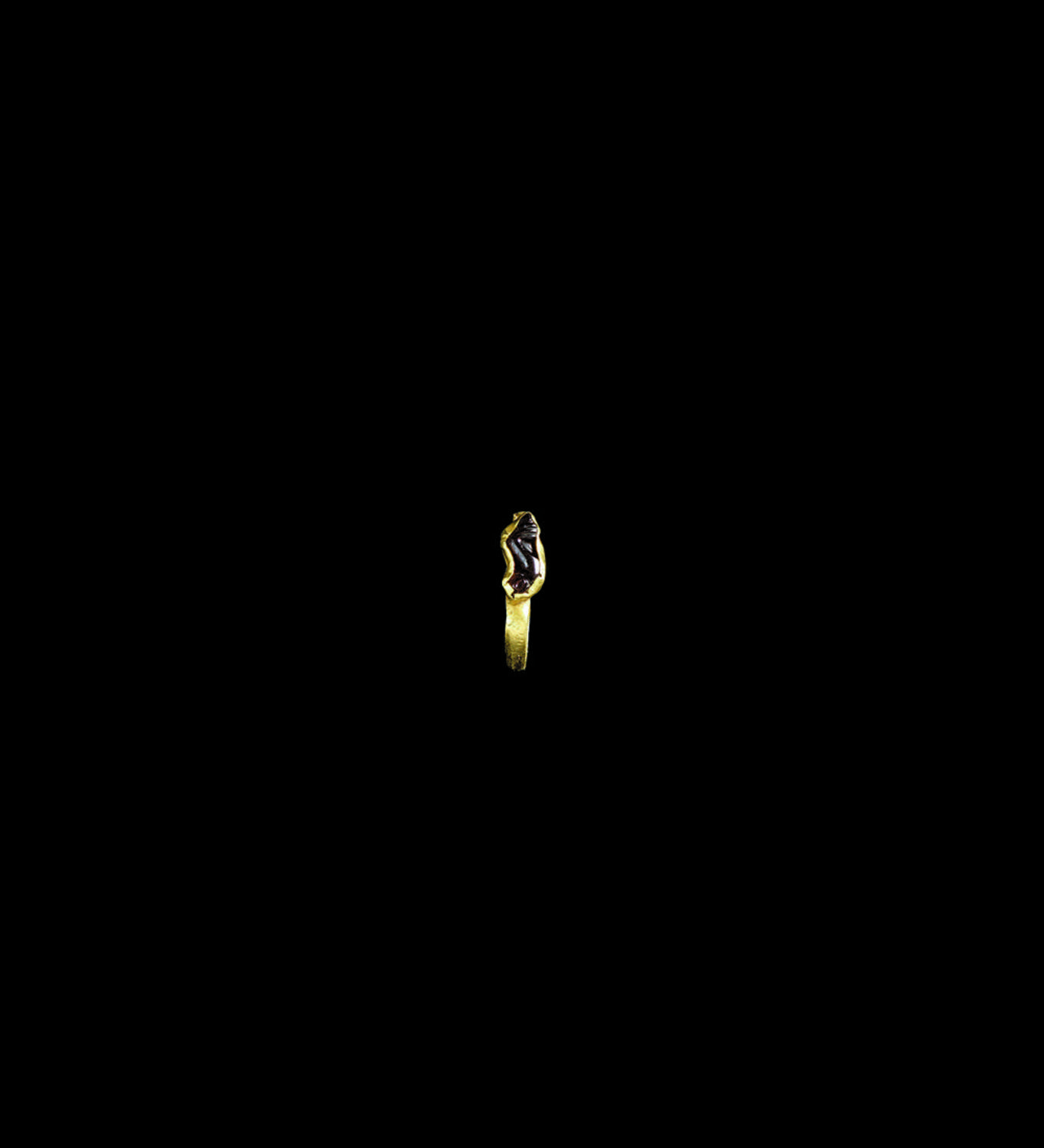 Anello in lamina d'oro con castone sagomato formato da un granato
