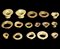 Sedici sostegni cilindrici in lamina d'oro con parte superiore a tesa e piccolo piede (16)