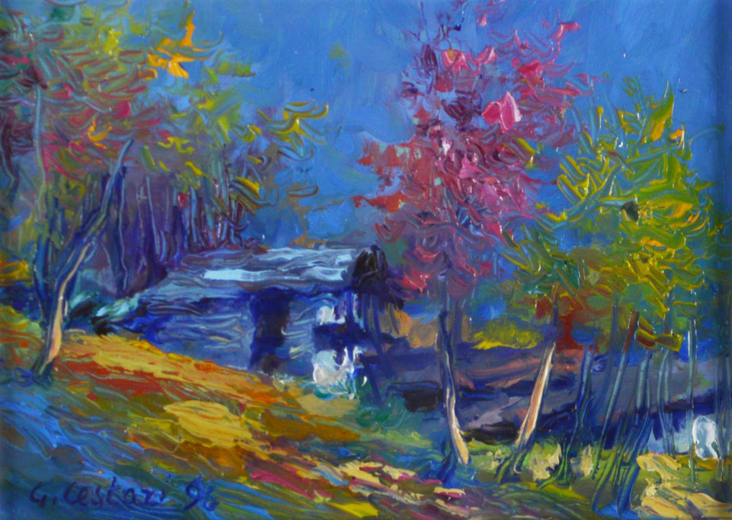 Gianni Cestari PAESAGGIO olio su cartone, cm 13,5x18 firma e datato eseguito...