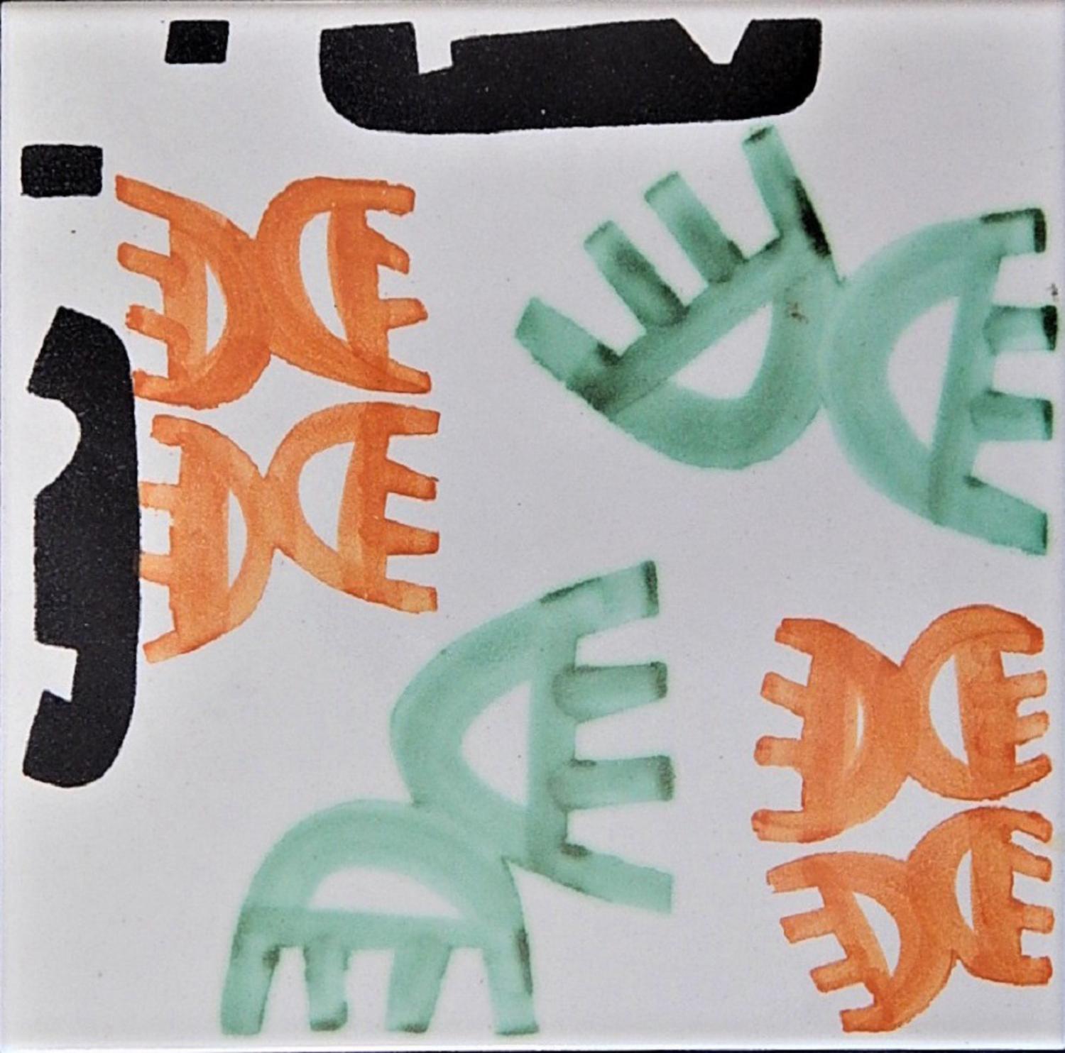 Giuseppe Capogrossi MOSCA CIECA piastrella di ceramica smaltata, cm 20x20