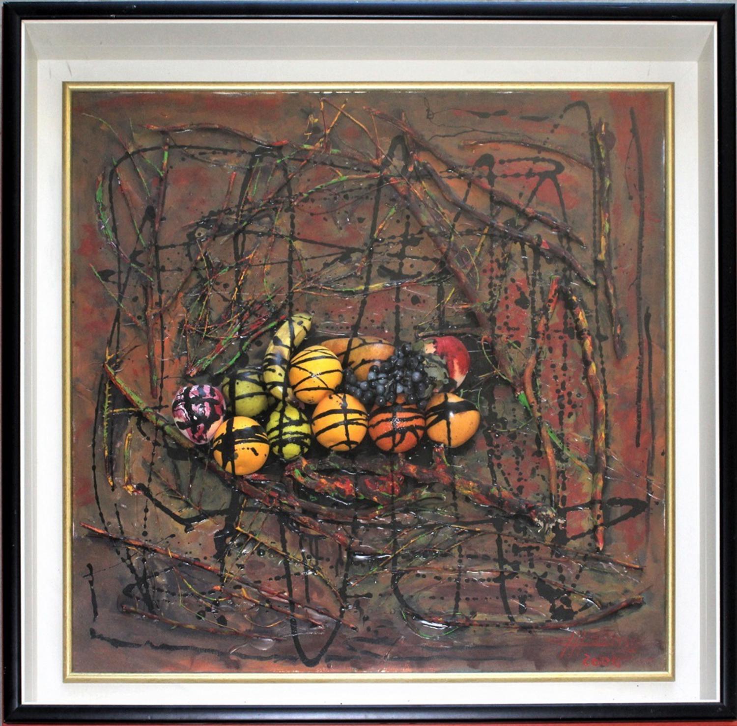 Vito Marmo NATURA MORTA tecnica mista/collage su tela, cm 90x90 firma...