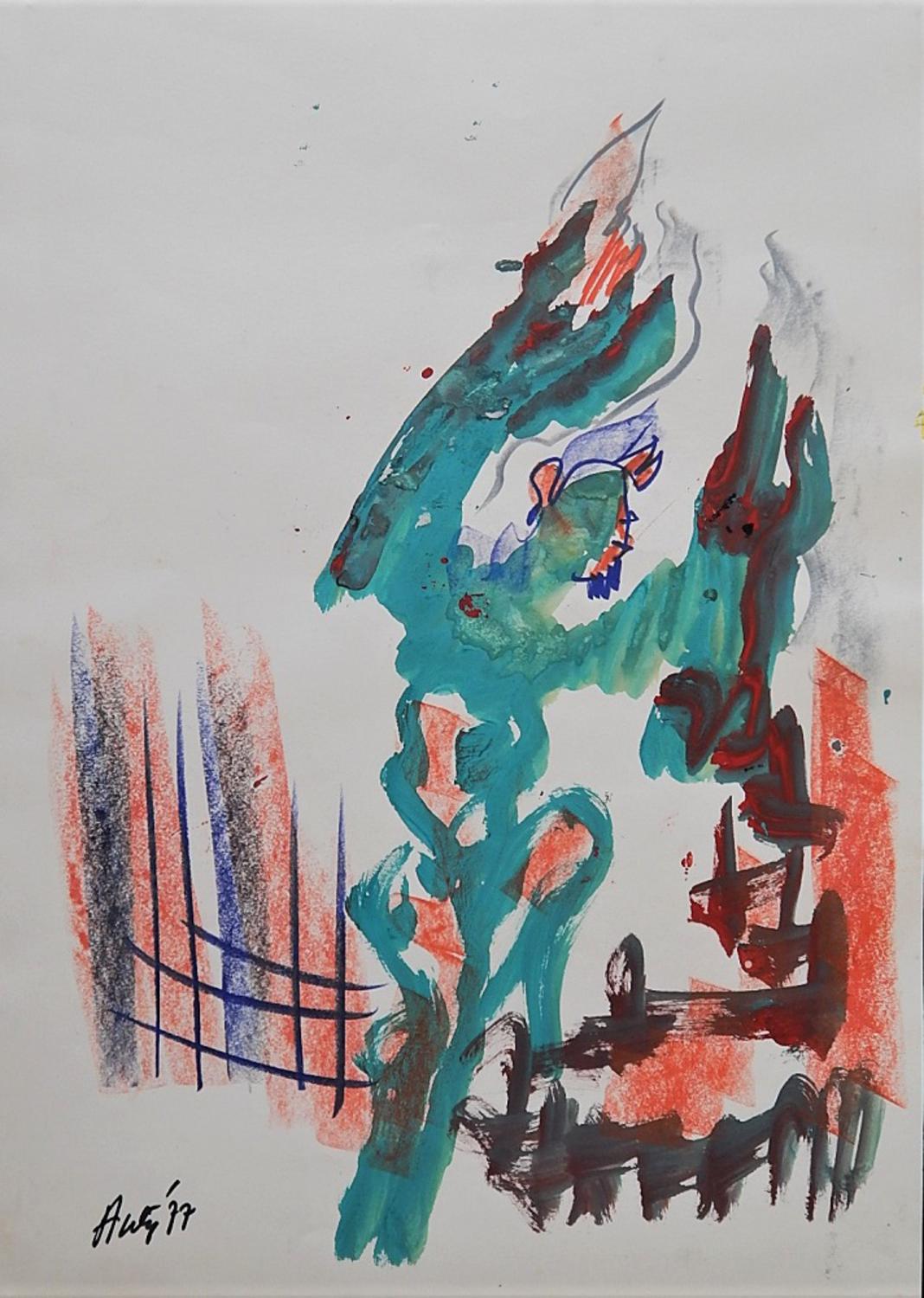 Lotto 119 | Auty SENZA TITOLO tecnica mista su carta, cm 70x50 firma e data 1977