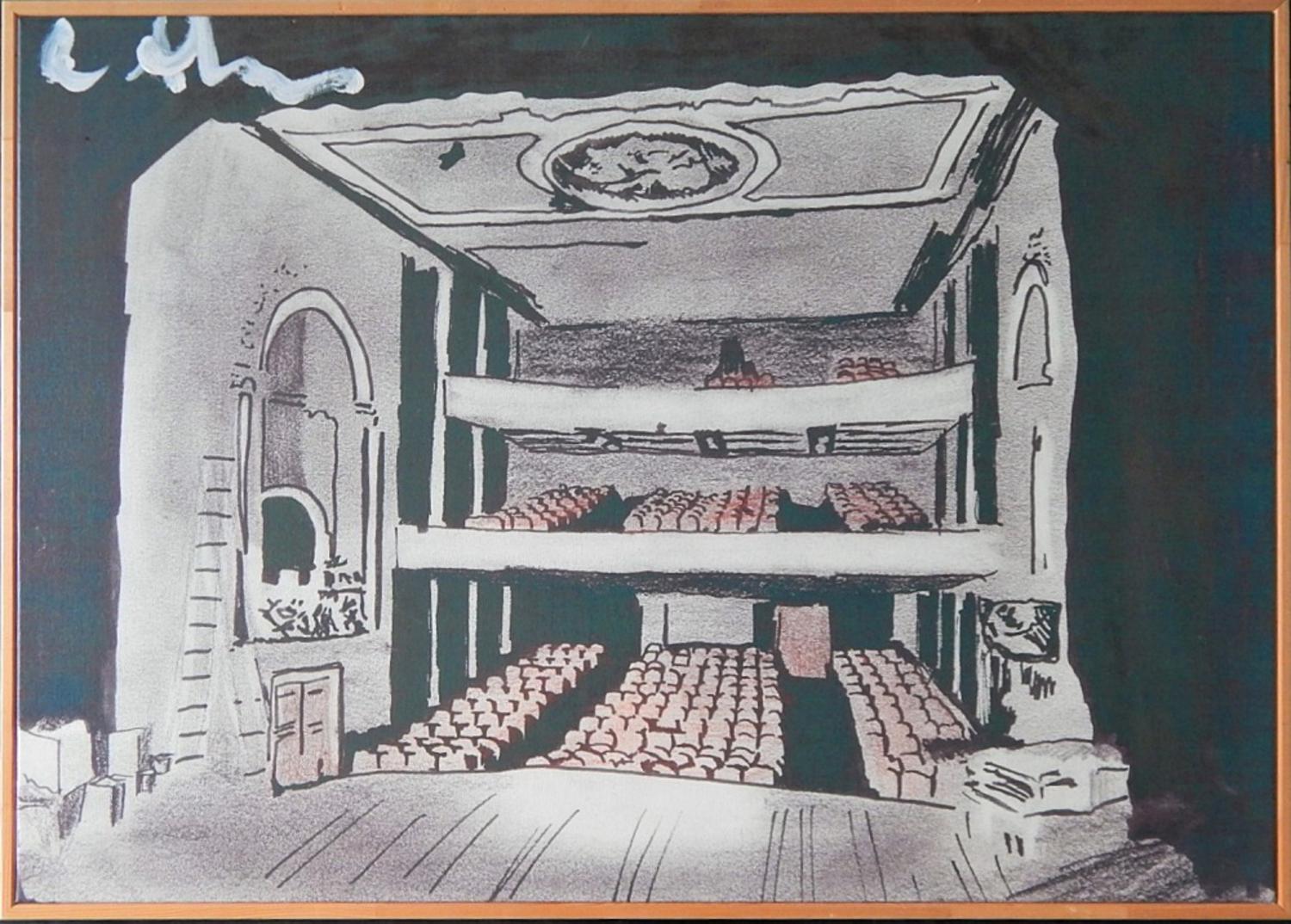 Ignoto MORTE DEL TEATRO serigrafia ritoccata a mano, cm 70x100 firma