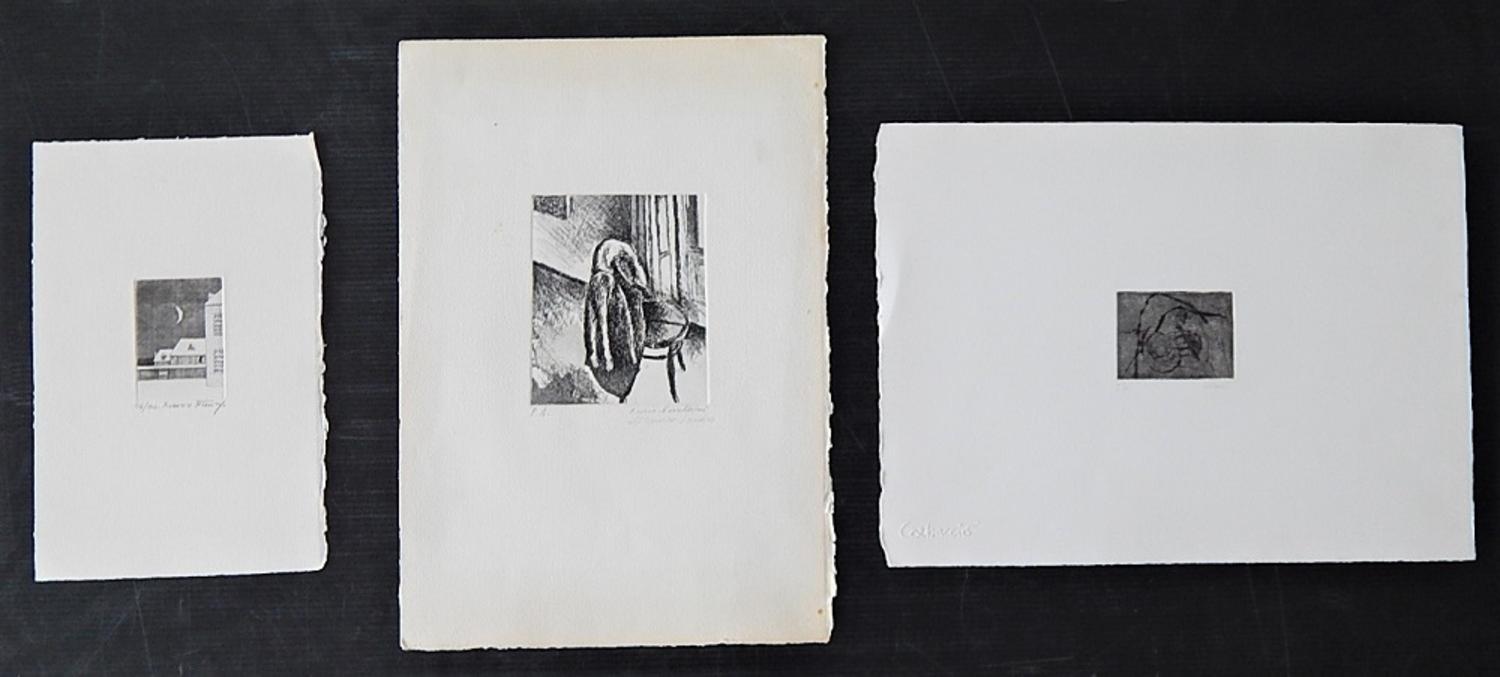 Ignoto Lotto di 3 opere: SENZA TITOLO incisione, cm 6,8x4,8 su foglio cm...