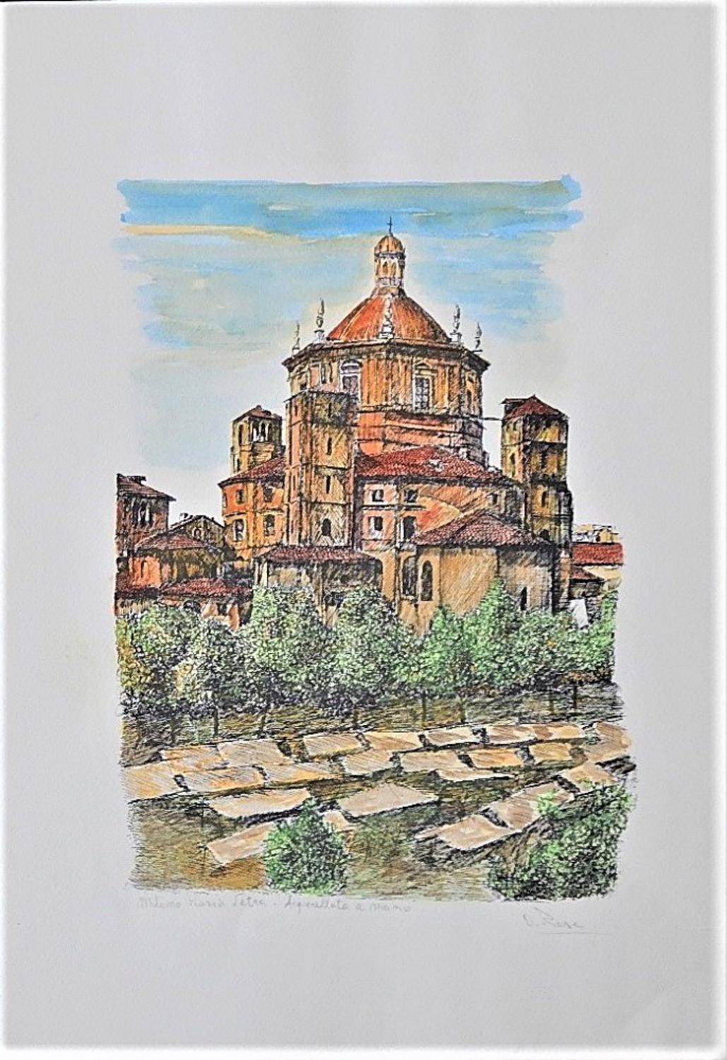 Ignoto MILANO PIAZZA VETRA litografia acquerellata a mano, cm 50x35 firma