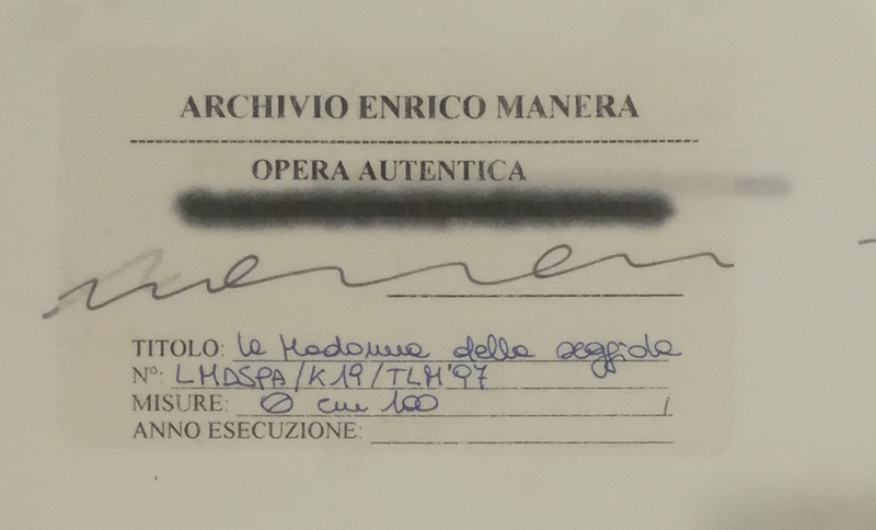 Certificazione: Autentica su foto dell'artista - Firmato fronte opera