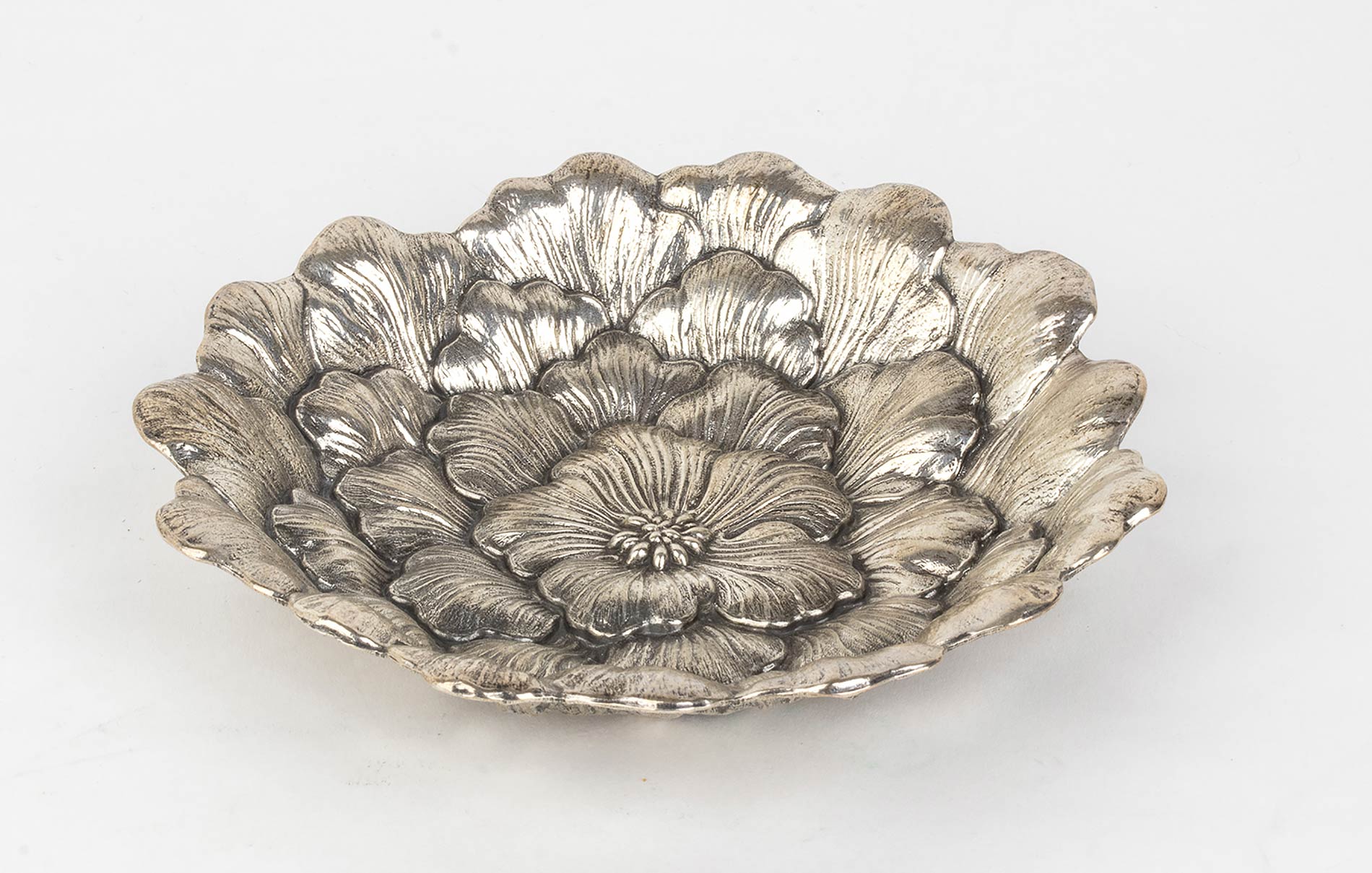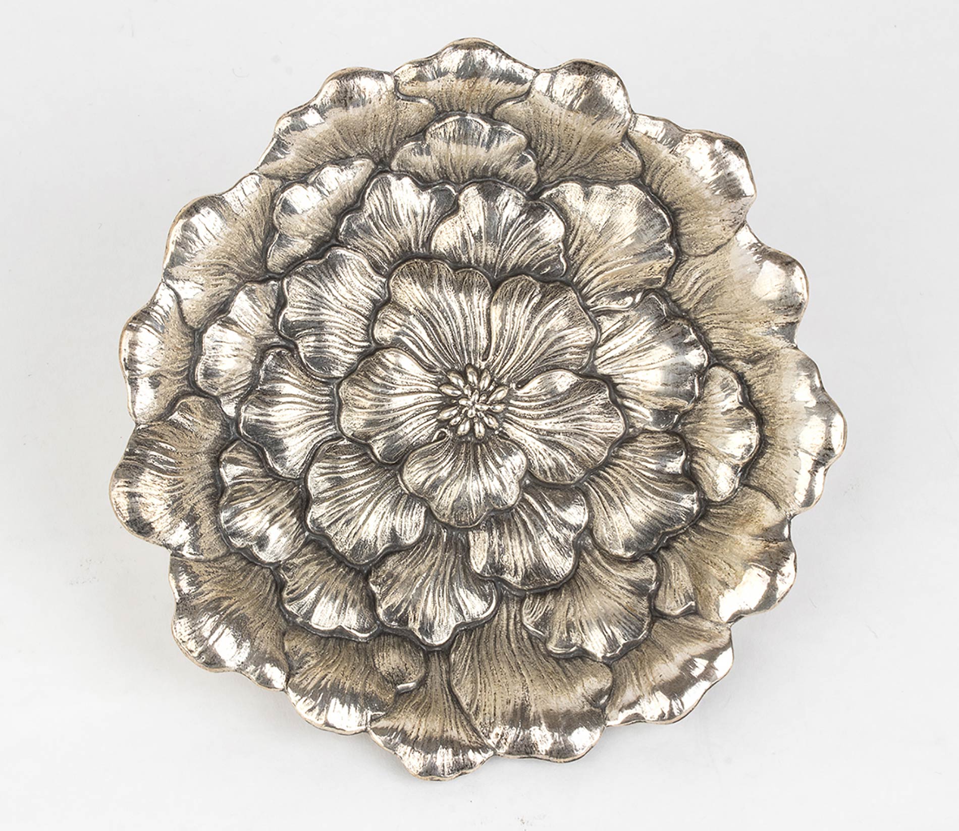 Collezione fiori, "Gardenia" misura II. Punzonato Gianmaria Buccellati. Diametro 12.5 cm. Peso 114 gr. Scatola e certificato. Stato di conservazione: ***** ottimo.