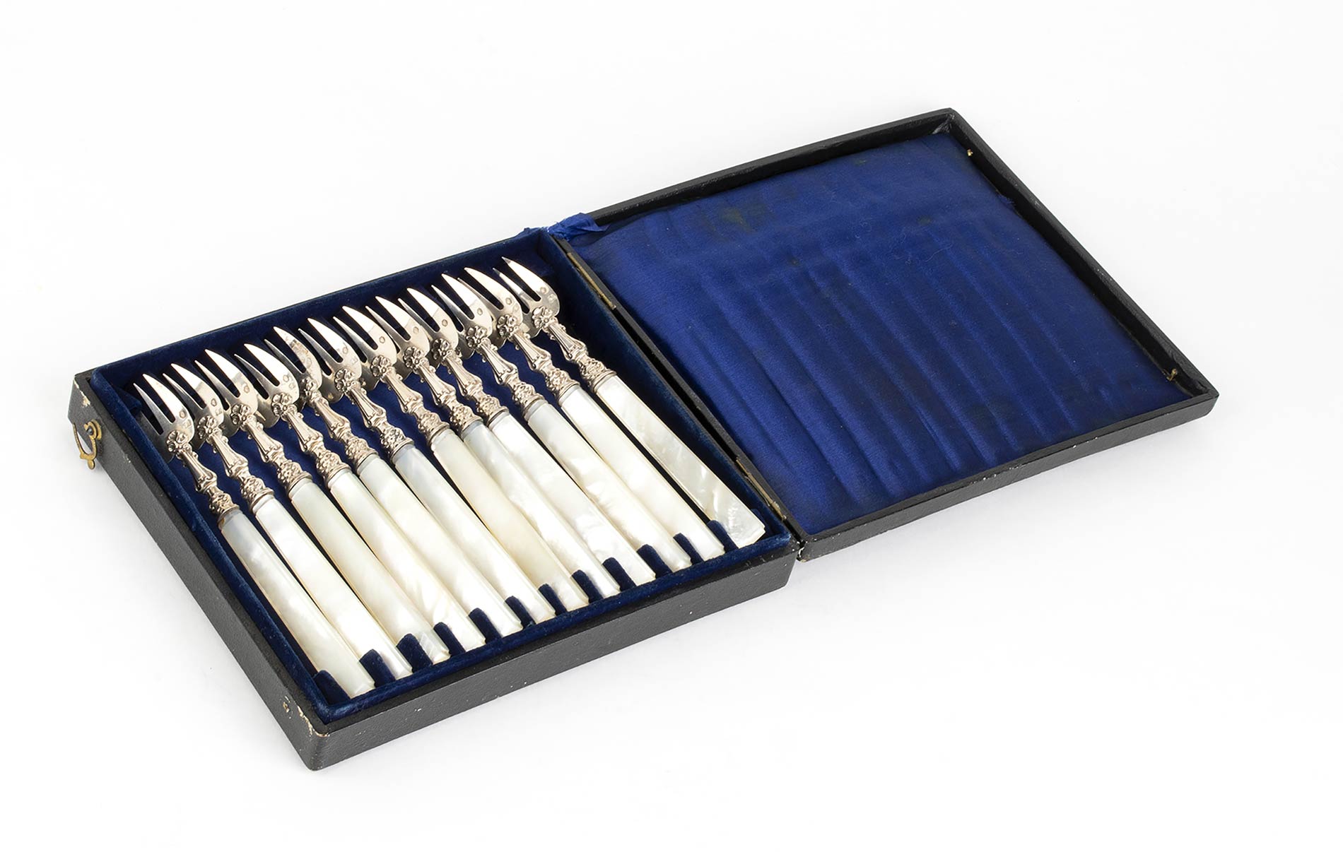 12 forchettine francesi in argento e madreperla - 1840-1879