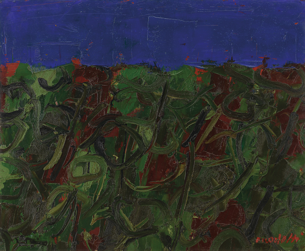 ENNIO MORLOTTI Lecco 21/09/1910 - Milano 15/12/1992 Paesaggio ligure, 1960 olio su tavola cm. 64x77,5; firma in basso a destra, dichiarazione d'autenticità dell'artista al retro e su foto datata 1968.