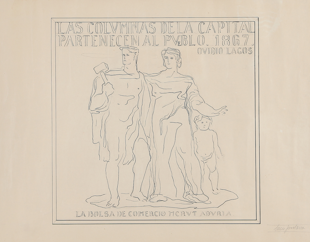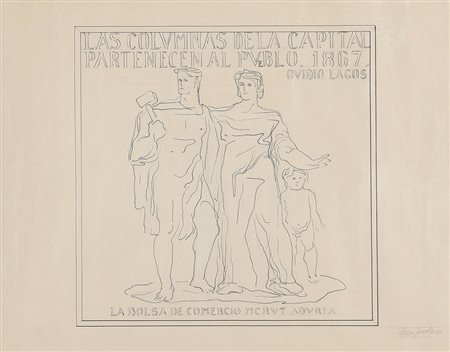 LUCIO FONTANA Rosario Santa Fe' (Argentina) 19/02/1899 - Varese 06/11/1968 Progetto per monumento, 1940-42 inchiostro e matita su carta cm. 48x63,5; firma in basso a destra, dichiarazione d'autenticità di Teresita Fontana al retro, opera registrata presso l'Archivio Lucio Fontana come da numero 2470/1 su foto.