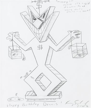 KENNY SCHARF 1958 King Norman, 2002 matita su carta cm. 31,1x26, titolo in...